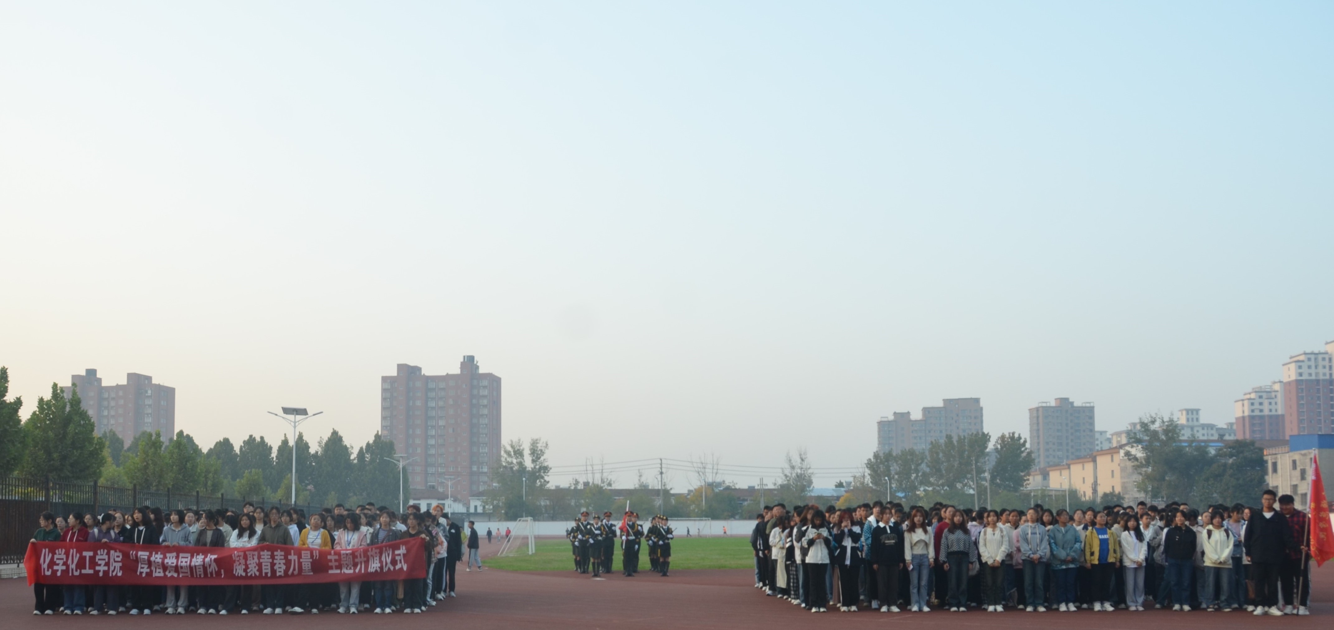 为进一步加强爱国主义教育,引导学生以更加饱满的精神学习贯彻习近平新时代中国特色社会主义思想,学习党的二十大精神,激励永利23411集团学子坚持理想信念,报效伟大祖国。10月16日早晨,化学化工学院开展升国旗仪式暨“厚植爱国情怀,凝聚青春力量 ”主题党日活动。学生处副处长李杰、院党委书记李海涛、院长张银堂、党委副书记张颜梅、副院长王涛、学生处思想教育科科长陈旭、全体辅导员及23级班主任出席活动。化学化工学院23级全体学生参加活动。