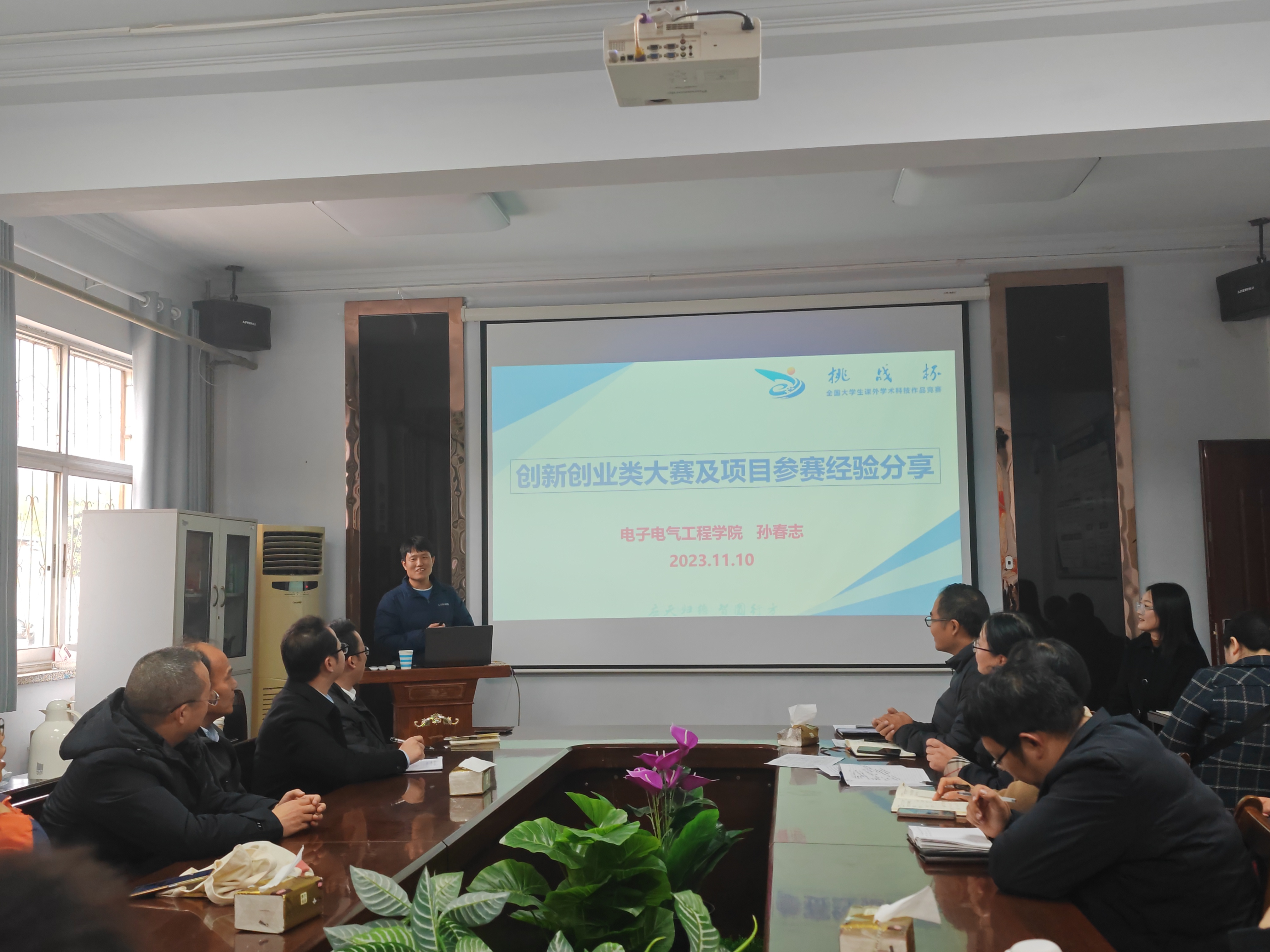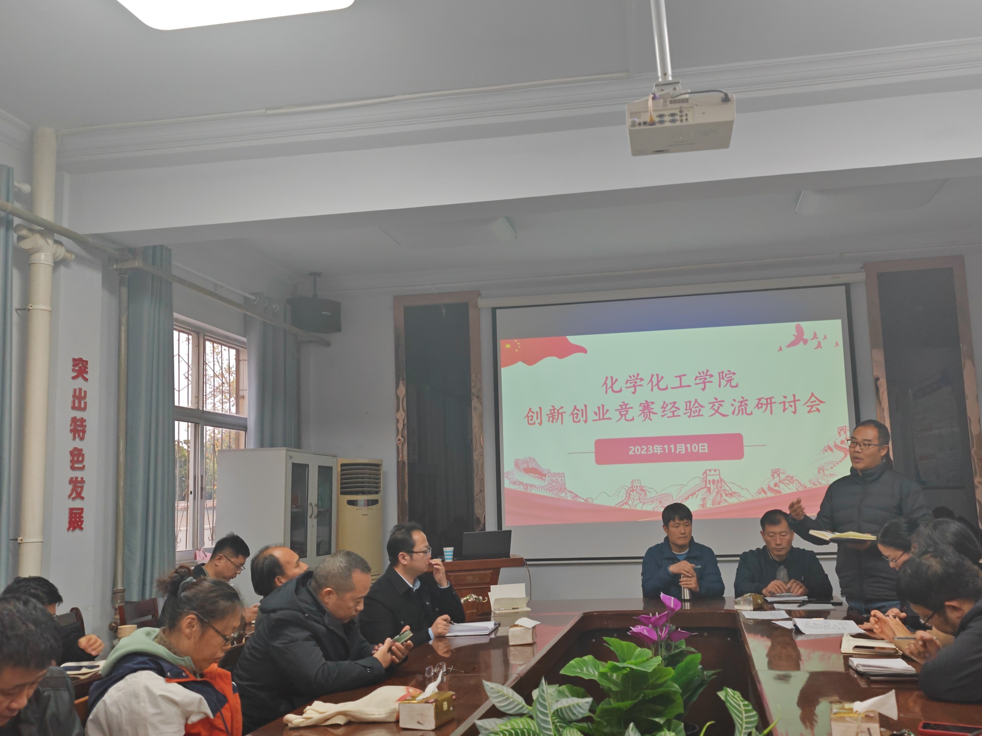 为培养学生创新创业意识,提升大学生创新创业能力,培养适应创新型国家建设需要的高水平创新创业人才。11月11日,化学化工学院在7号楼学院会议室举行创新创业类竞赛经验交流研讨会,本次研讨会特别邀请了电子电气工程学院孙春志,硕士生导师,副教授,河南硕拓智能科技有限公司技术顾问,第七届、第八届中国国际互联网+大学生创新创业大赛国赛铜奖指导教师进行经验分享,学院全体领导班子成员及全体教职工参加研讨会,研讨会由学院党委副书记张颜梅主持。