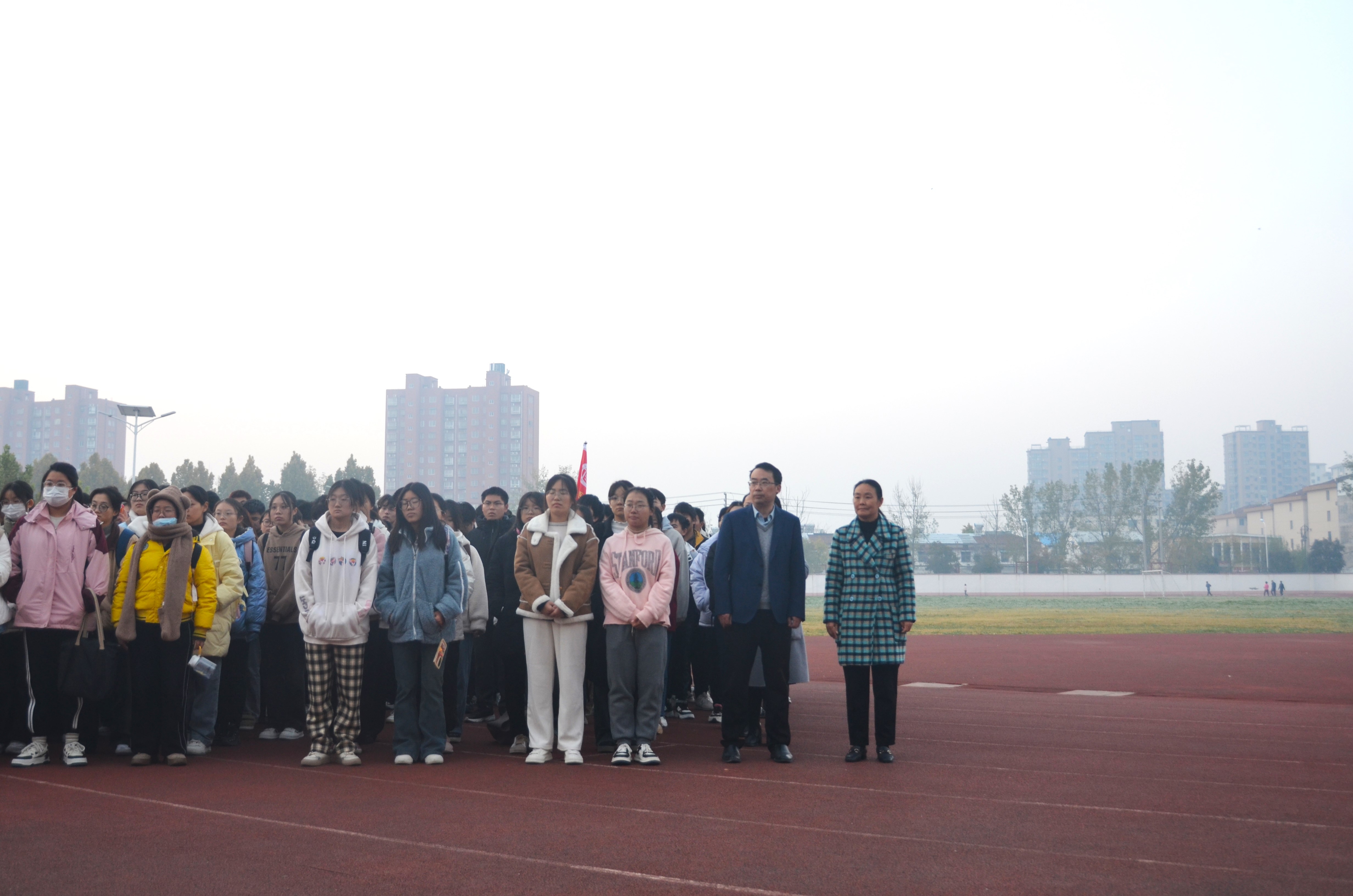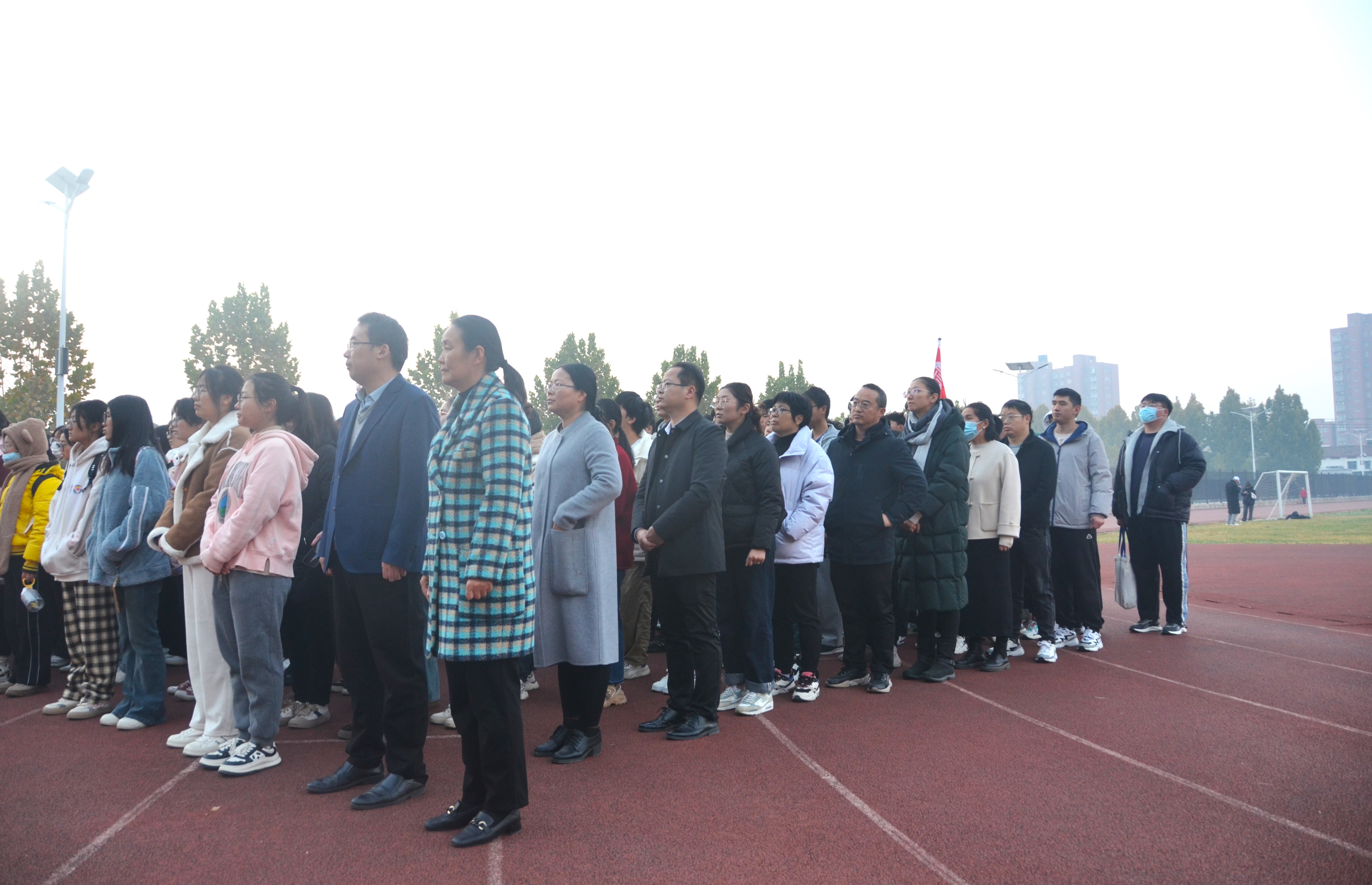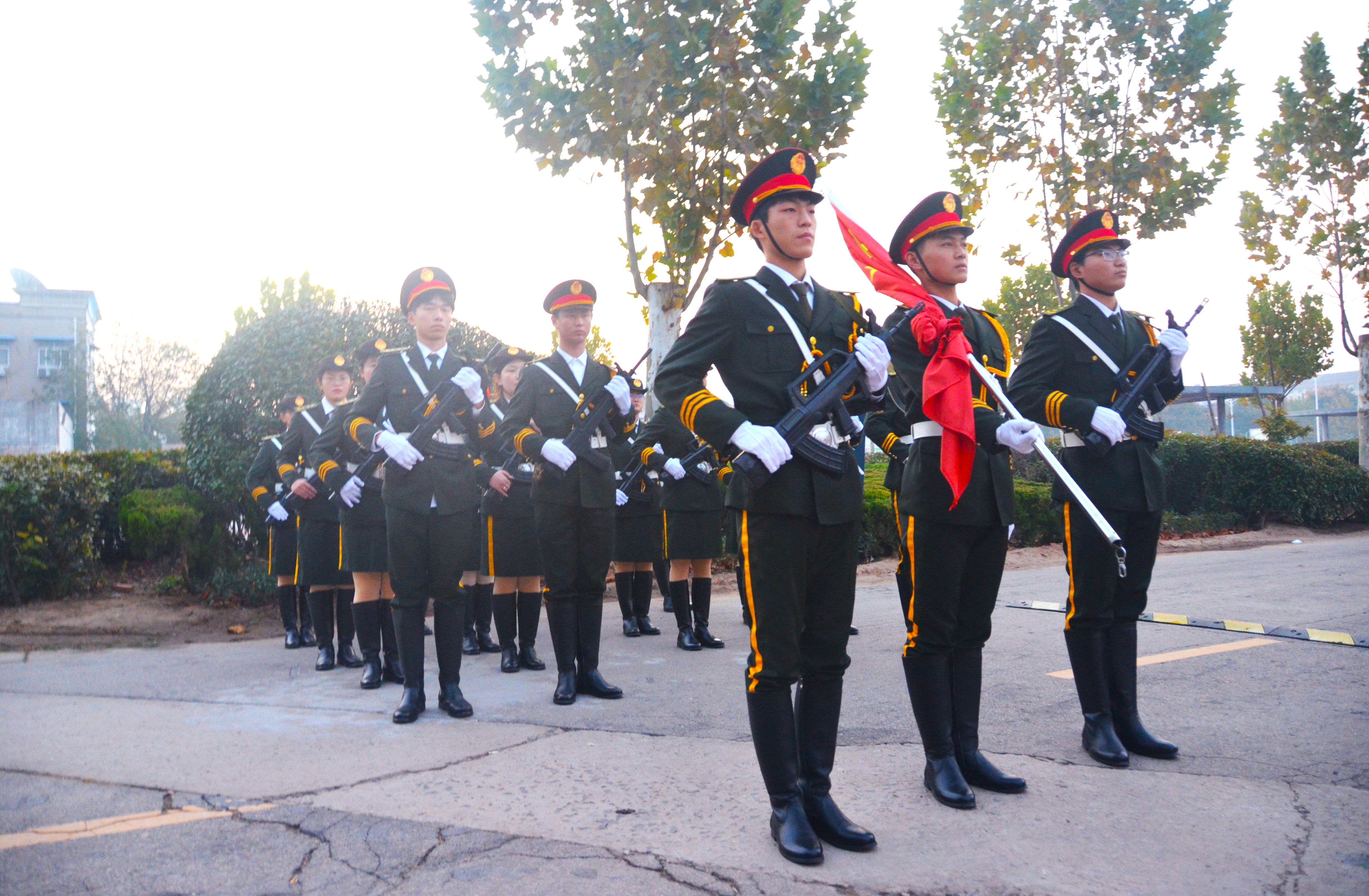 上午6时许,全体参与人员准备就位。7时,升旗仪式正式开始。在全体师生的注目礼下,英姿飒爽的国旗护卫队踏着整齐的步伐护送着鲜艳的国旗走到旗杆下,行礼完毕后,伴随着庄严的《中华人民共和国国歌》,五星红旗冉冉升起,迎风飘扬。在场的每一个人向国旗行注目礼,合唱国歌,表达对五星红旗的崇高敬意和对祖国繁荣昌盛的深切祝福。