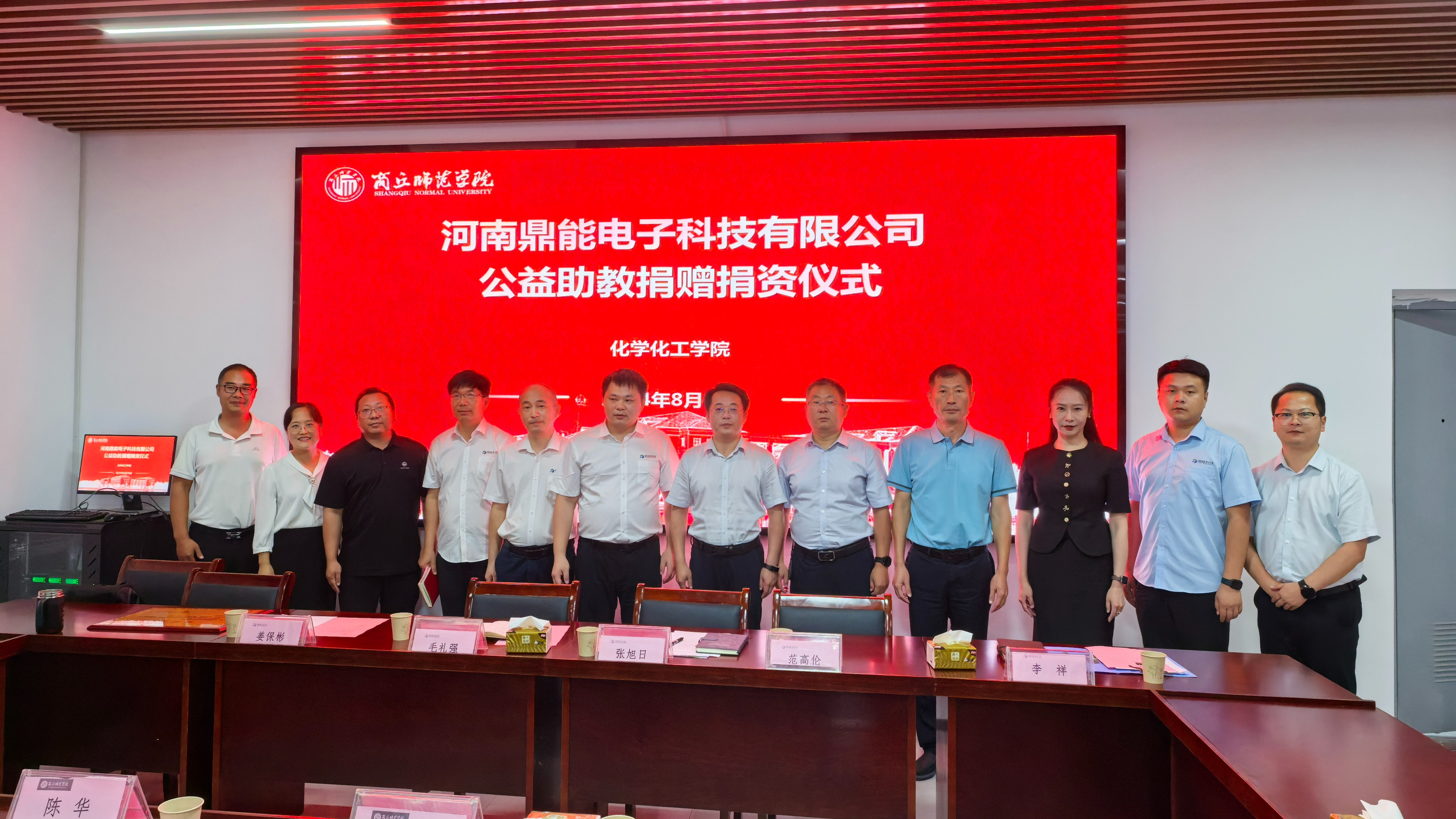 8月30日下午,永利23411集团“鼎能科技奖学金”捐赠仪式在睢阳校区化学化工学院会议室举行,副校长翟滨出席会议,代表学校接受捐赠,并向河南鼎能电子科技有限公司总经理张旭日颁发了捐赠证书。校地合作与服务中心主任陈华、学生处副处长袁慧,河南鼎能电子科技有限公司和化学化工学院相关人员参加会议。会议由化学化工学院党委书记李海涛主持。