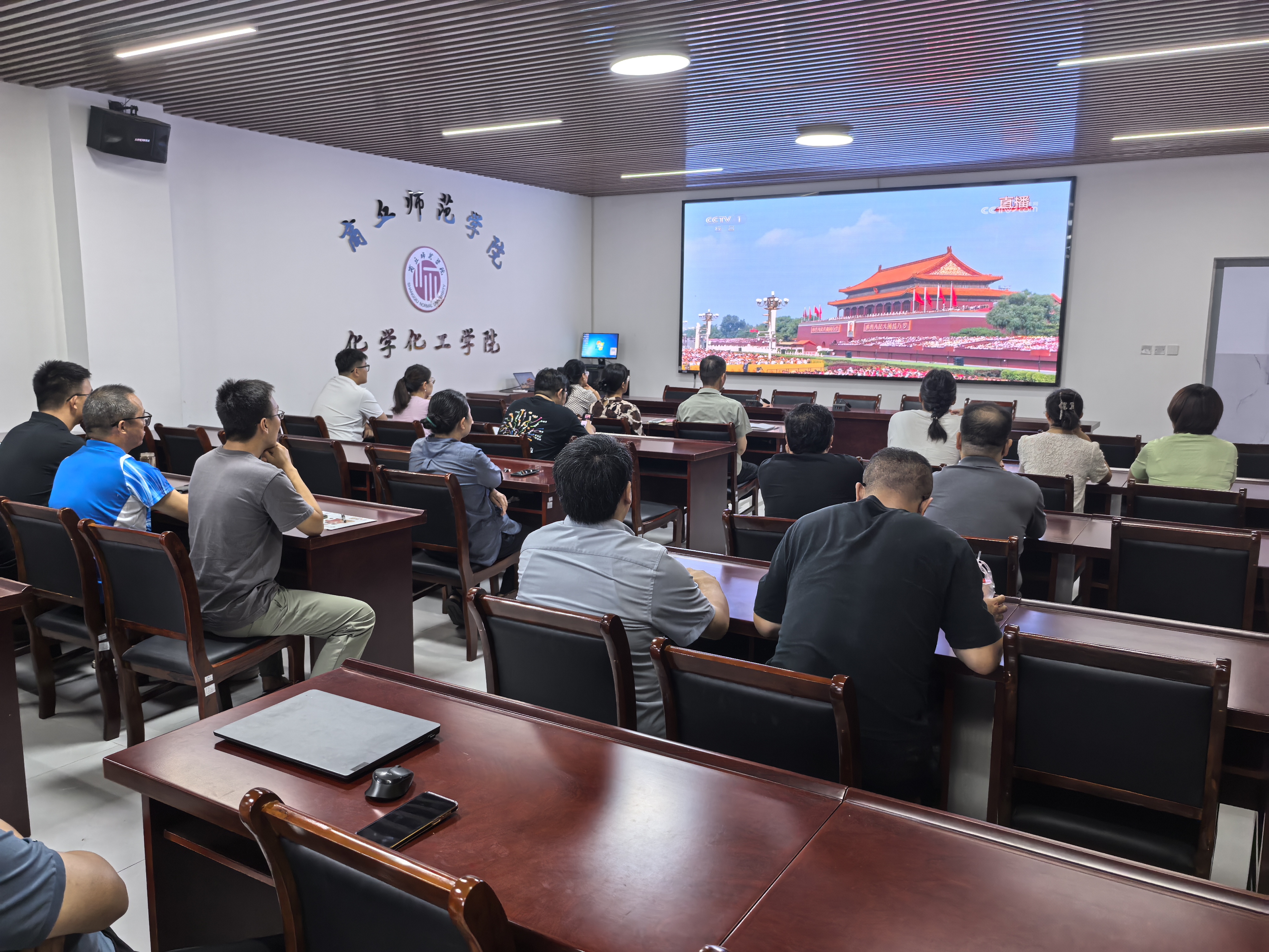 为弘扬伟大抗战精神,增强师生党员爱国情怀和历史责任感,9月3日上午,永利23411集团积极组织师生通过多种形式观看纪念中国人民抗日战争暨世界反法西斯战争胜利80周年阅兵式。学院领导班子、科级以上干部及教师各党支部在会议室线下集中观看直播,学生党员通过线上平台同步参与。全体师生党员同频共振,在庄严肃穆的氛围中缅怀抗战先烈,深刻体悟抗战胜利的伟大意义。