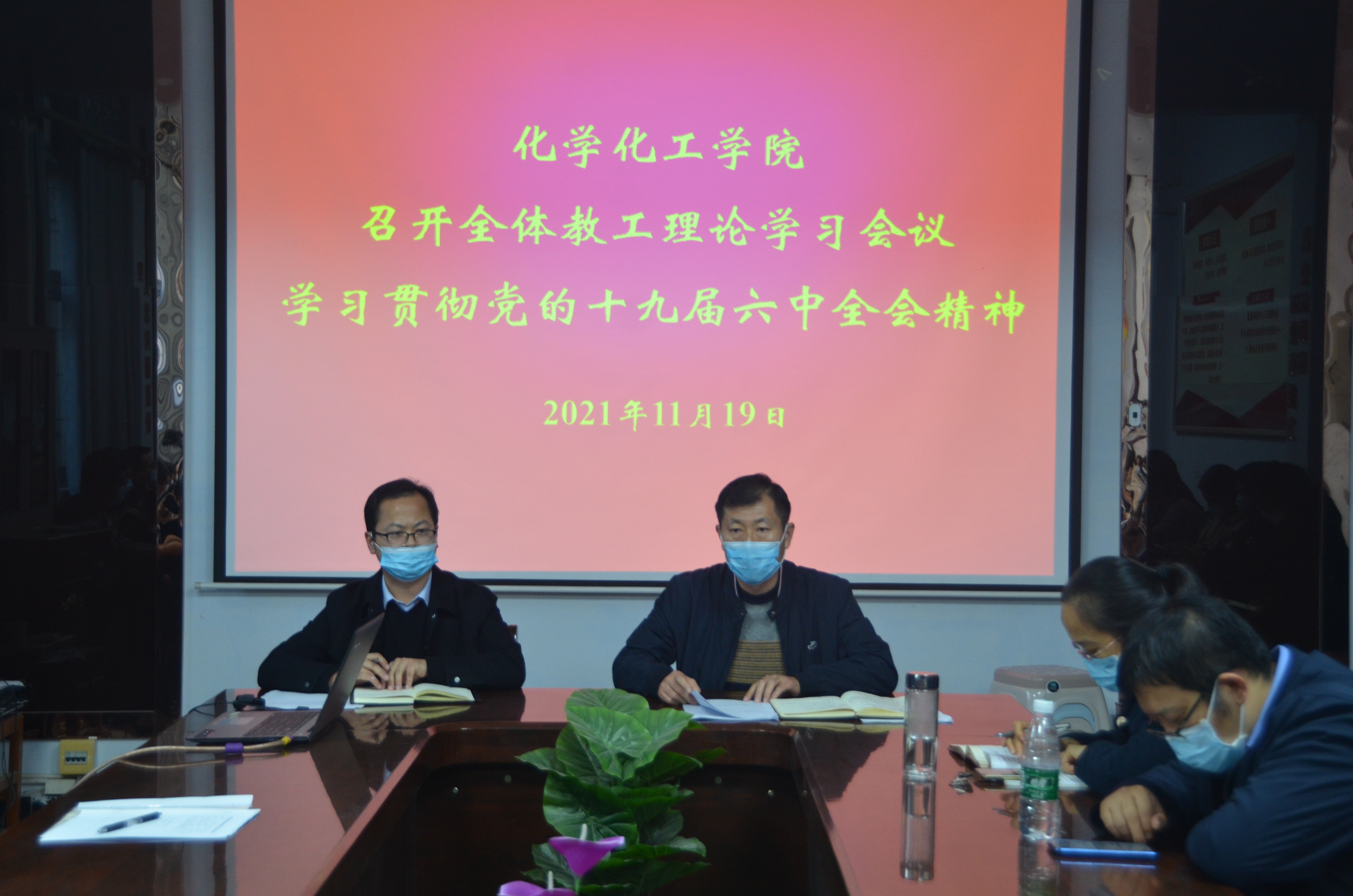 11月19日,化学化工学院组织召开全体教职工会议,专题学习党的十九届六中全会精神,院党委书记李海涛主持。