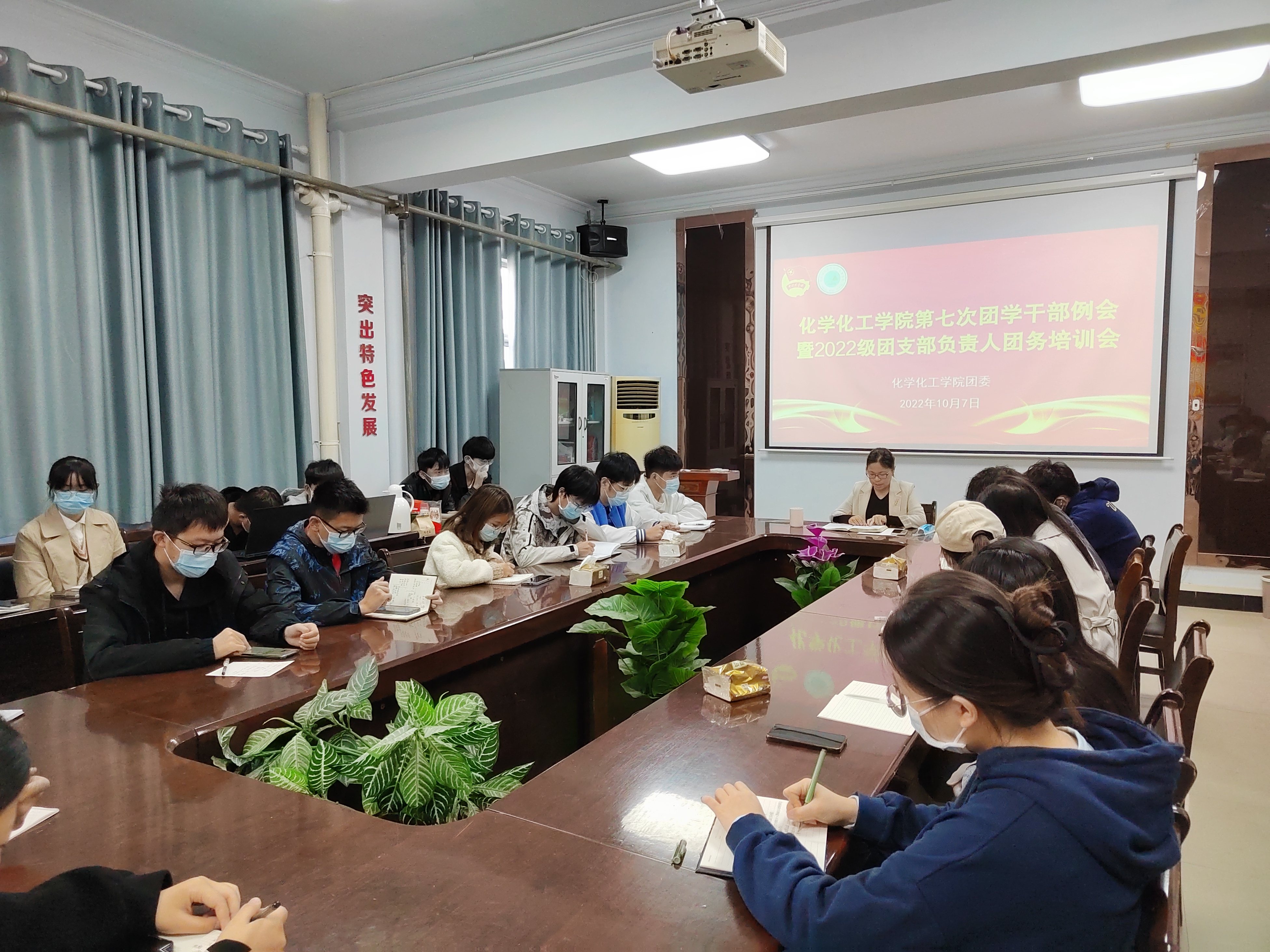 10月7日上午,化学化工学院团委于7号楼学院会议室召开了第七次团学干部例会暨2022级团支部负责人团务培训会。本次会议由院团委副书记郭家瑞主持,全体团学干部参加。