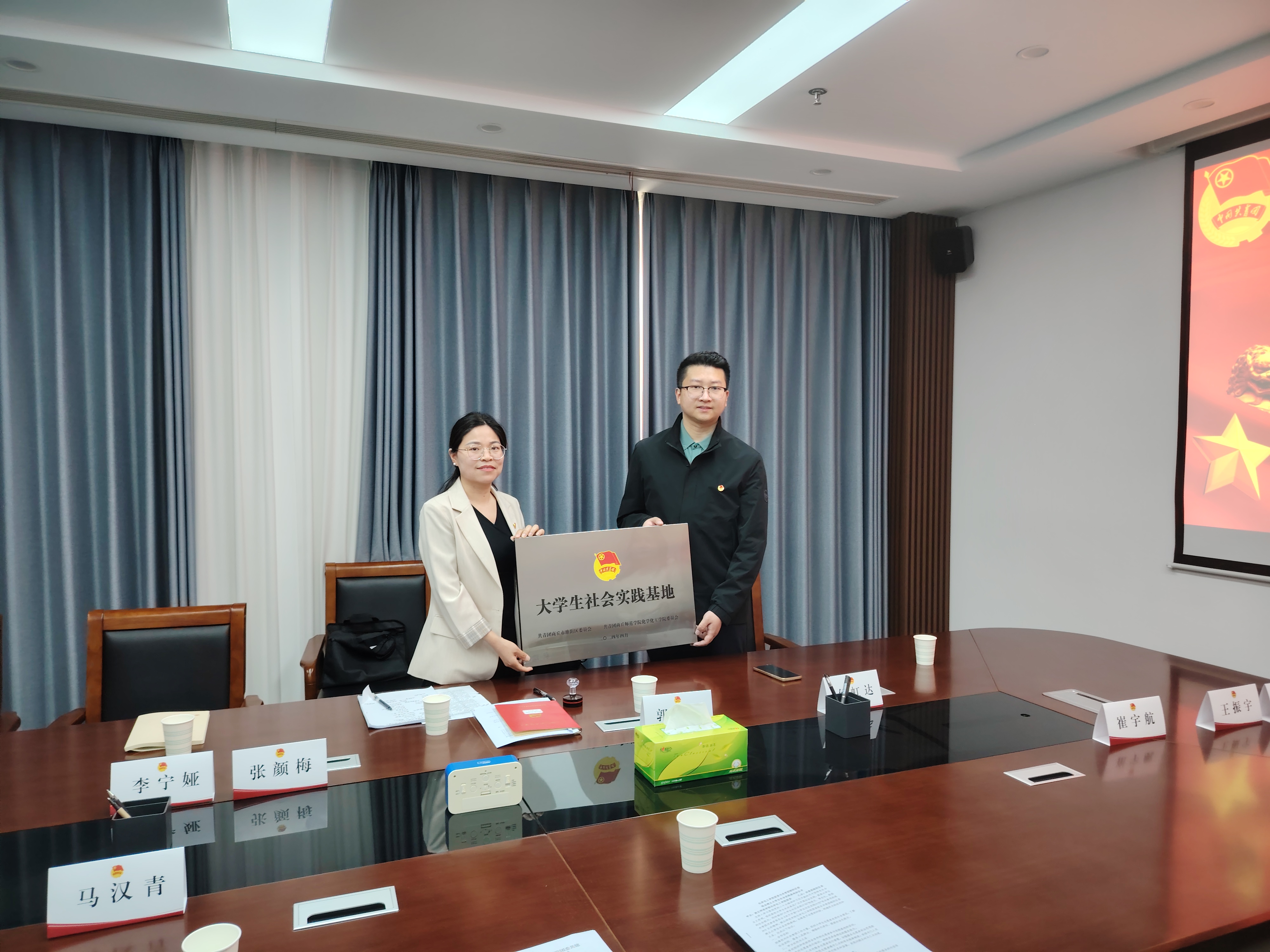 仪式结束后,化学化工学院团委为睢阳区团委所下辖的文化街道、东方街道、古城街道、宋城街道、新城街道、古宋街道等街道团工委进行了挂牌。