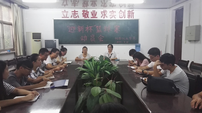9月11日,化学化工学院在文化路校区七号楼会议室召开‘迎新杯’篮球赛动员会。副院长刘瑛、团总支书记李龙梅出席会议,团总支、学生会主席张岩、体育部成员和运动员们参加了会议。动员会由李龙梅老师主持。