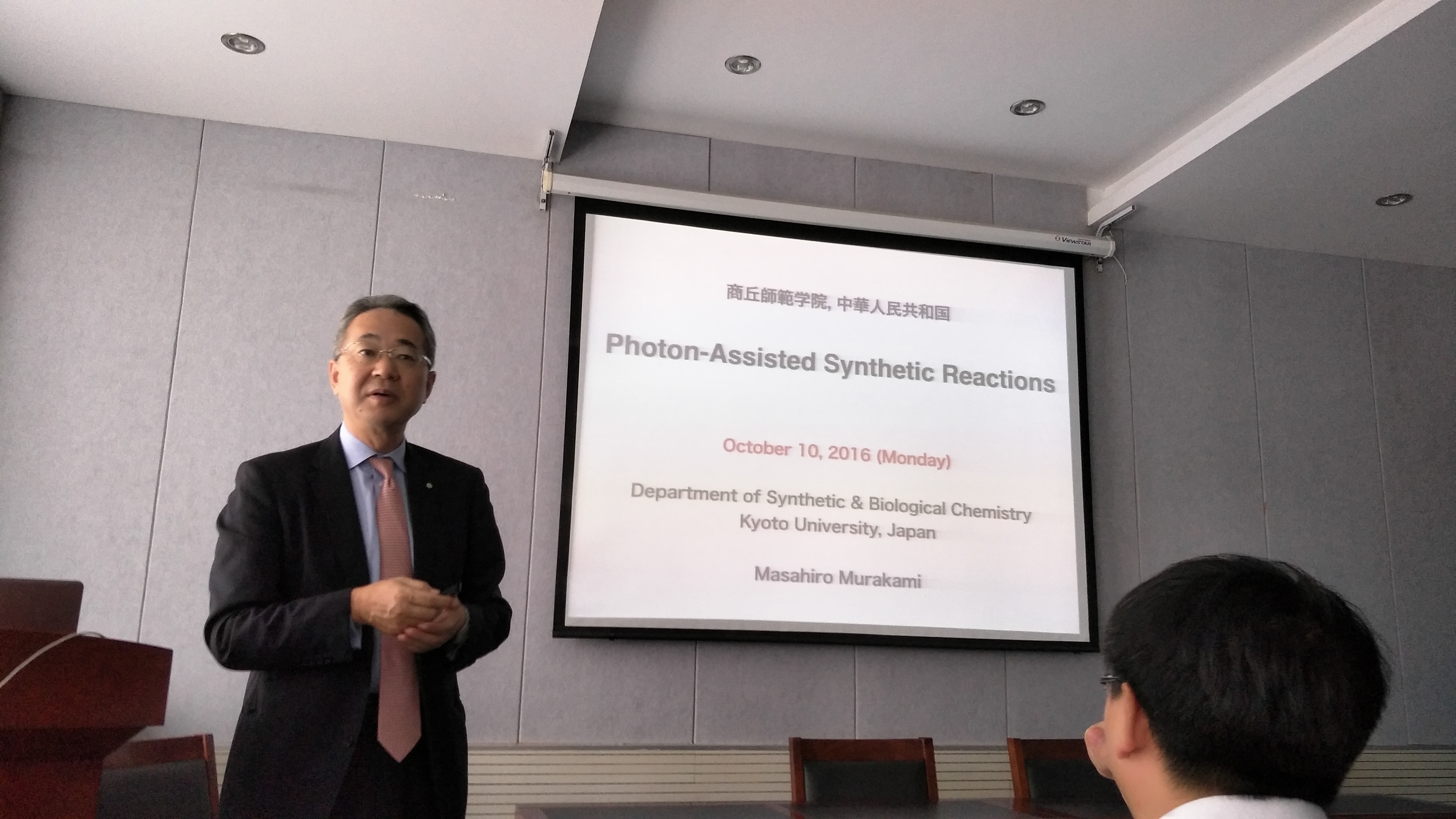 2016年10月10日,下午3点,村上正浩教授在文化路校区化学实验楼311室作了题为《Photon-Assisted Synthetic Reactions》的学术报告。报告会由刘澜涛主持,化学化工学院的50多名师生聆听了此次报告。