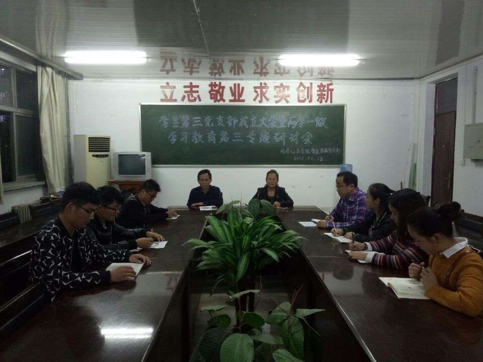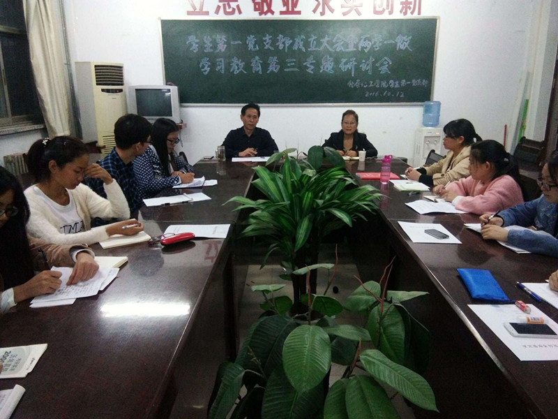 2016年10月12日至13日,化学化工学院党总支对原学生党支部进行了调整划分,并召开了两学一做学习教育第三专题研讨会。化学化工学院党总支书记邱友良、副院长刘瑛出席会议。全体学生党员参加会议。