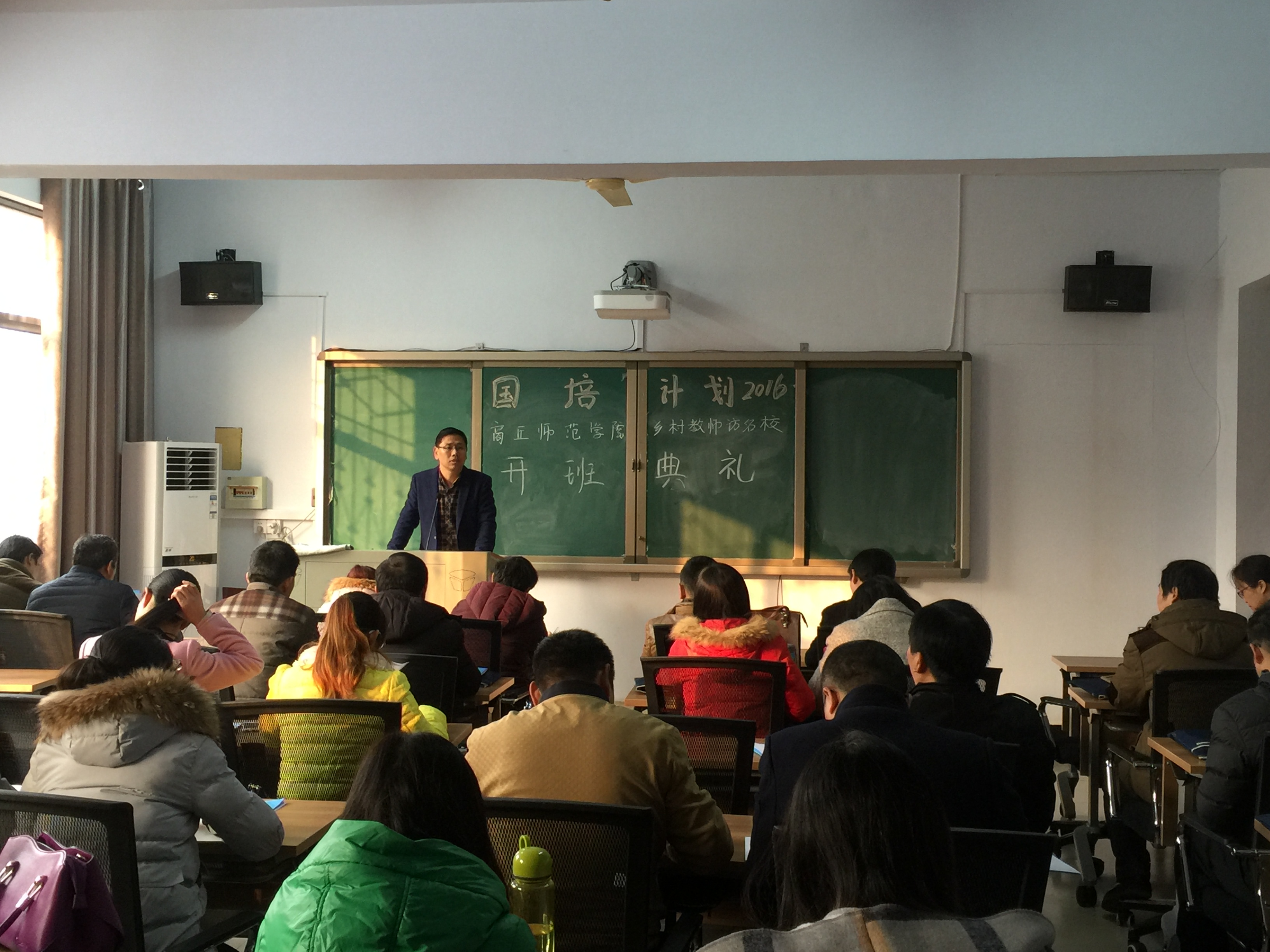 开班典礼上,首先化学化工学院副院长瞿鹏致词,瞿院长向参加此次学习的学员表示热烈的欢迎。他简要向大家介绍学校和学院的基本情况,然后说明了本次国培项目目的、内容和对象——培训基层教学一线的骨干老师,希望通过本次职后培训,更新教育理念和教学方法,加强同行间沟通间流。最后瞿院长温馨提醒各位学员注意保暖、饮食,注意人身及财产安全,尽量不酗酒、不出入娱乐场所等。
