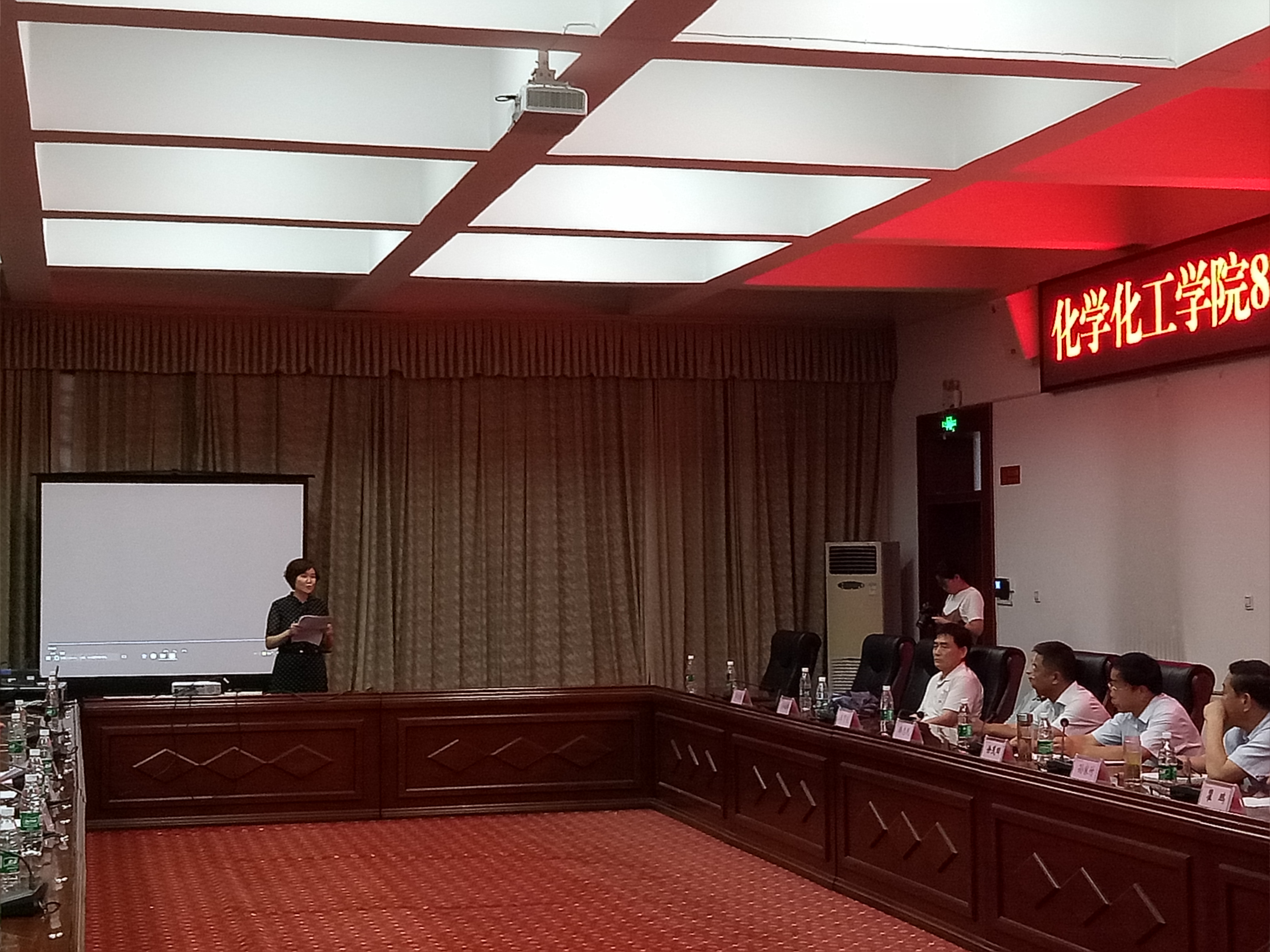 2017年7月15日下午,化学化工学院87届毕业生重返母校,在平原路校区1号楼417会议室召开毕业三十周年座谈会。副校长徐茂田老师,校地合作处处长、校友办公室主任孙家付老师,化学化工学院党总支书记韩忠民老师、院长瞿鹏老师、团总支书记李龙梅老师,原化学科党总支书记李贯良老师,班主任李淑萍老师、班主任齐福祥老师、实验室管理丁秀云老师出席了座谈会,座谈会由87届校友刘 瑛、吴思锋主持。
