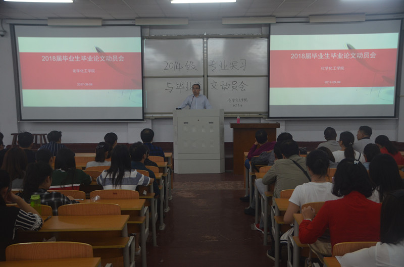 9月4日下午,化学化工学院于我校文化路校区1#207教室召开了“2018届毕业生专业实习与毕业论文动员会”,院长瞿鹏、副院长孟团结出席了此次会议,永利23411集团全体老师及2018届学生参加了会议。