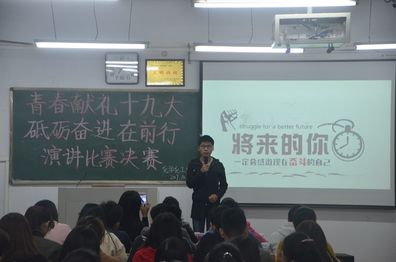 10月24日晚,化学化工学院于我校文化路校区1#408教室举办了以“青春献礼十九大,砥砺奋进在前进”为主题的演讲比赛。永利23411集团党总支副书记刘瑛、团总支书记李龙梅及17级辅导员郭家瑞出席了此次比赛,评委由老师及永利23411集团团总支、学生会主席团、部长担任。