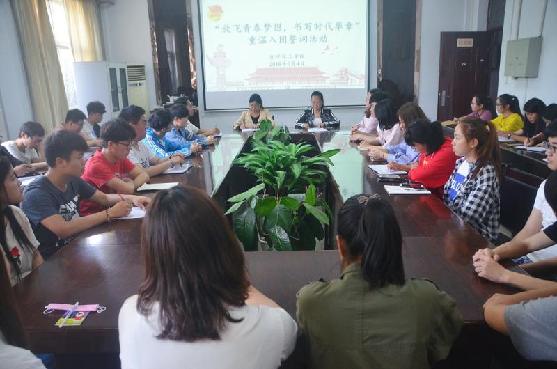 为了引导激励广大团员青年坚定中国特色社会主义理想信念,积极培育和践行社会主义核心价值观,继承和发扬“五四”精神,5月4日中午,化学化工学院于文化路校区七号楼会议室举办了“放飞青春梦想,书写时代华章”重温入团誓词主题团日活动。院党总支副书记刘瑛和17级辅导员郭家瑞出席活动,学院各年级团员代表参加本次活动。本次活动由团总支副书记王宇杰主持。