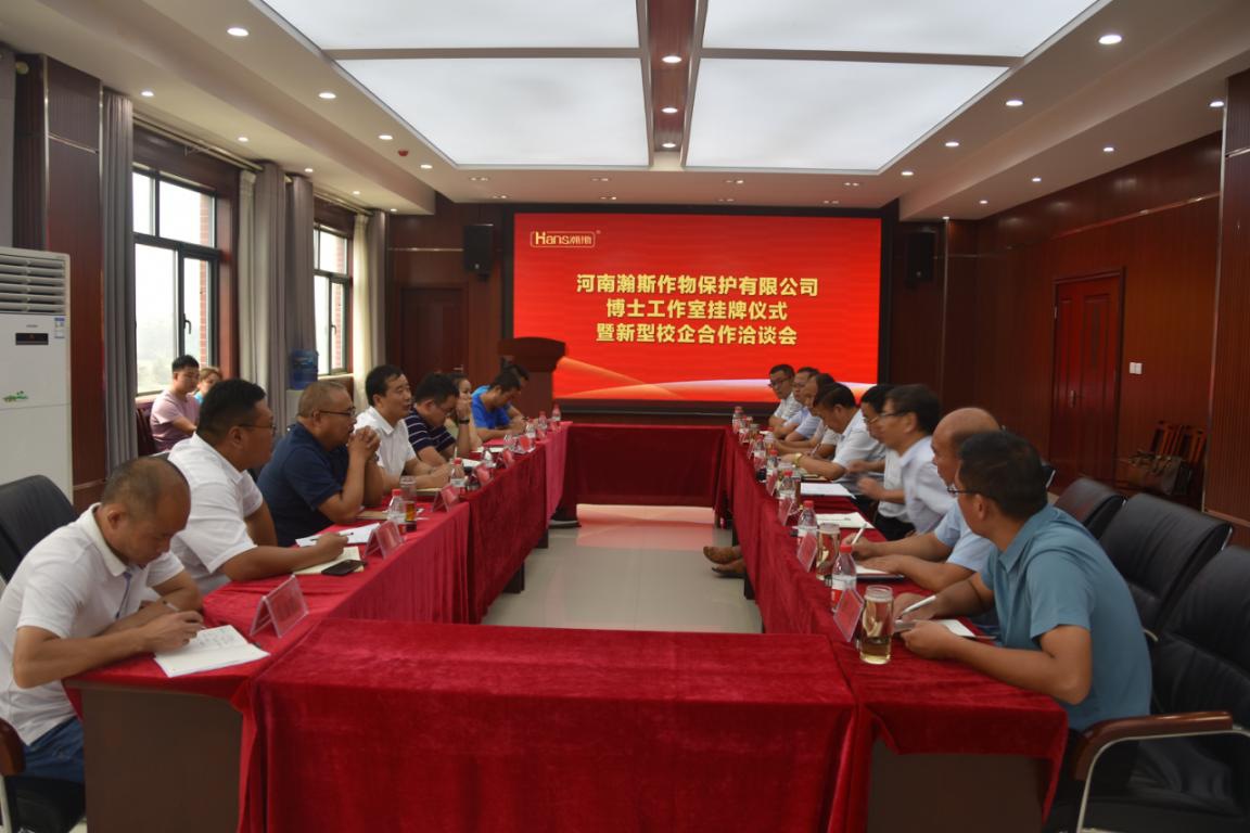 申艳林总经理代表河南瀚斯作物有限公司对徐茂田副校长一行的到来表示热烈欢迎,并介绍了河南瀚斯作物有限公司的发展概况、发展成就、软硬件实力、人才需求、战略规划等。