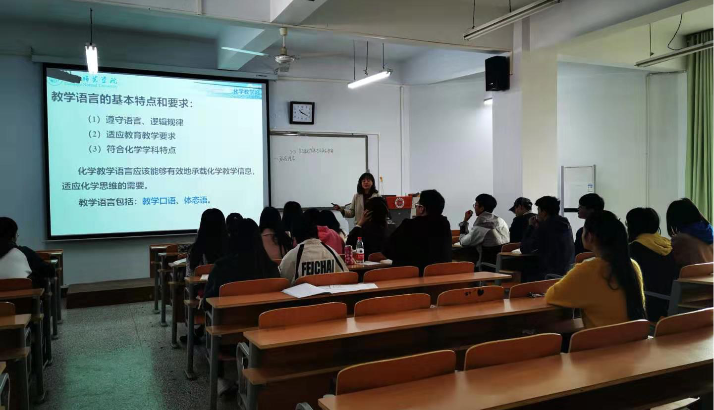 本次公开课以 “呈示教学信息与交流的技能”为题进行课堂展示,主要讲解了教学语言(包括教学口语和体态语)以及讲授(包括讲述、讲解和讲演)的技能。本次公开课设计了知识点回顾、重难点分析及重难点讲解环节,采取板书和多媒体辅助等教学手段,以问题为导向,采用讲授、讨论等教学方法,从学科与生活的结合点入手创设问题情境,及时抓捕学生课堂反馈信息,形成有效师生互动。本次公开课进展顺利,高效地实现了课堂教学目标,充分体现“以学生为主体,以教师为主导”的课堂教学理念,课堂上同学们参与度高,学生学习氛围和学习效果较好。