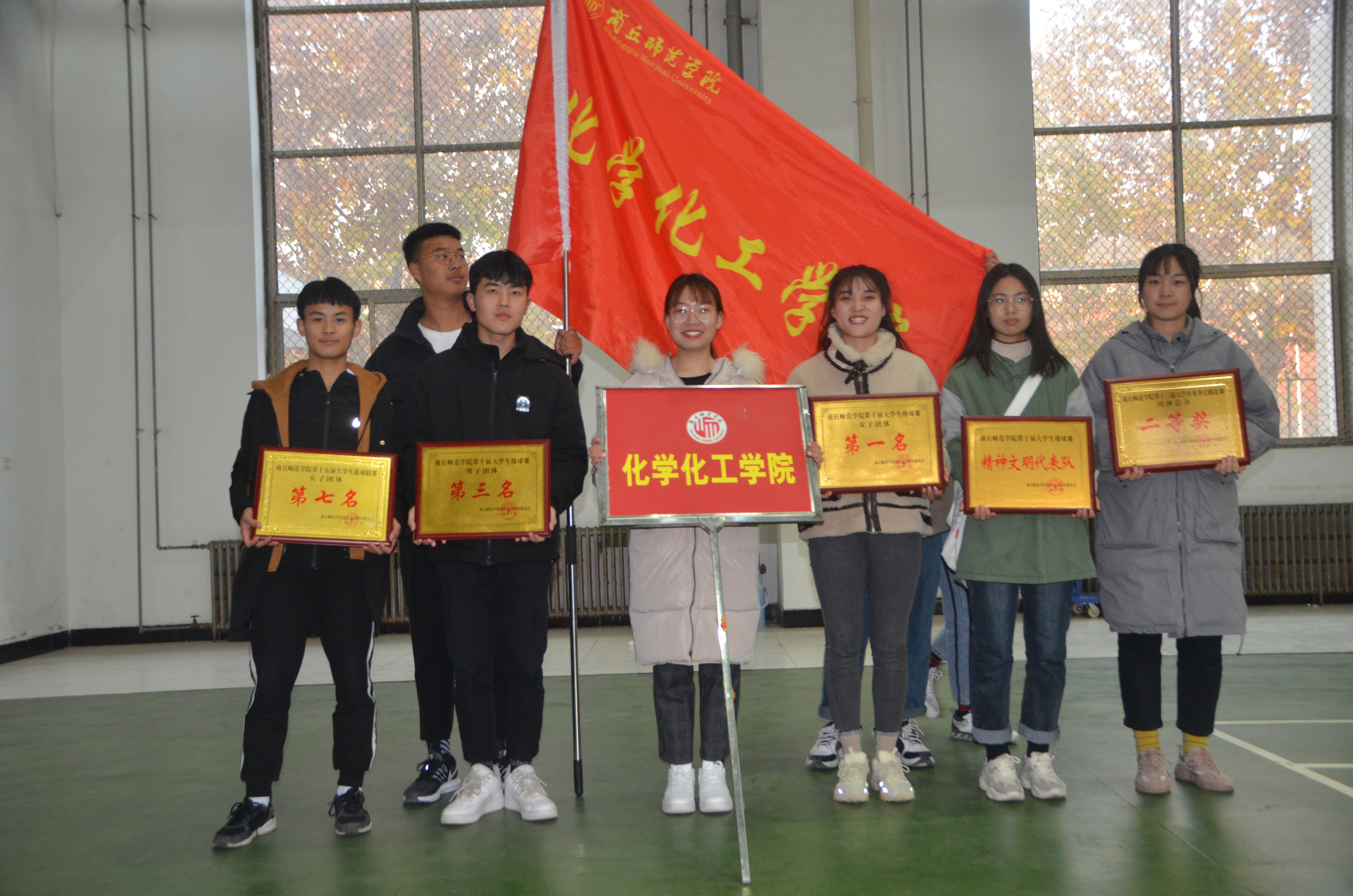 比赛还未开始,赛场上的气氛已经开始紧张起来,观众们翘首以盼期待比赛,各学院啦啦队情绪高涨,服务人员也已做好充分的准备。伴随着一声发令枪响,化学化工学院的参赛学生冲上跑道,他们挥洒汗水,奋力拼搏,在整个比赛中始终保持着积极昂扬的精神状态。场外的啦啦队高亢的呐喊声扣人心弦,给参赛学生带来了激情,将比赛推向高潮。冲刺阶段,化院的运动健儿们不服输、不言弃,最终,取得了团体总分第三名(二等奖)的好成绩,在众多参赛选手中脱颖而出摘得九个证书。