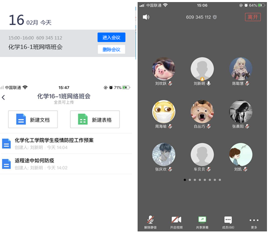 为增强同学们对新型冠状病毒的认识,提高警觉意识,约束自我行为,做好开学前的疫情防控准备工作。化学化工学院各级各班于2020年2月16日下午召开了“抗疫防疫,从我做起”线上主题班会。