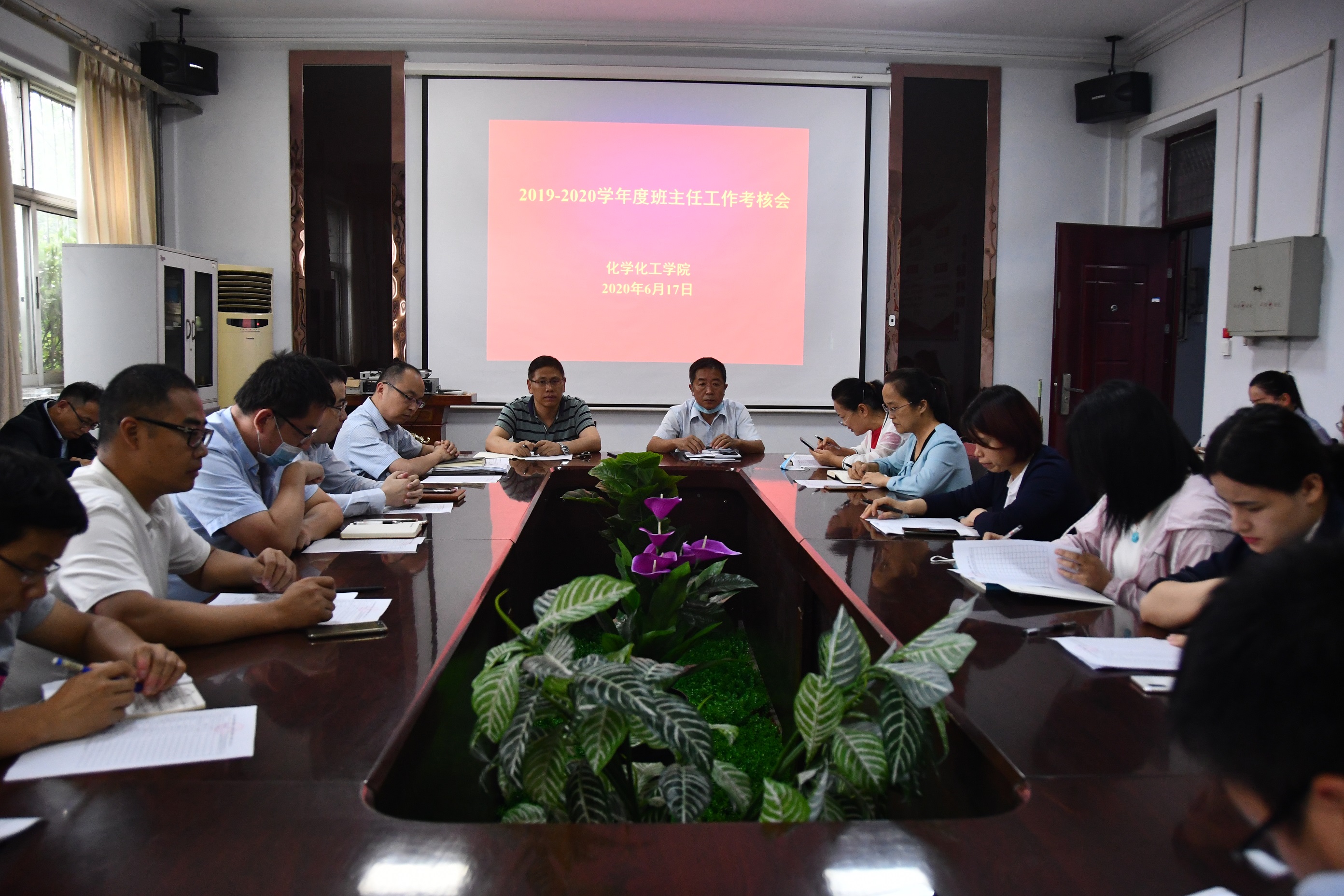 为了进一步提升班主任的学生管理能力,强化责任意识,6月17日下午,化学化工学院在7#104会议室举行了2019-2020学年度班主任考核工作会议,会议由院党总支书记韩忠民主持,学院领导班子、办公室主任、教学办公室人员、全体辅导员和班主任参加会议。