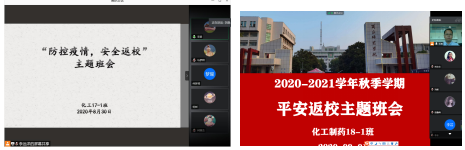 为了进一步做好2020年秋季学期学生返校复学各项工作,确保学生安全顺利返校复学,并引导学生适应常态化疫情防控背景下的校园学习和生活,8月30日-9月1日,化学化工学院各班在班主任和辅导员的组织下,分别在线召开了安全返校主题班会。