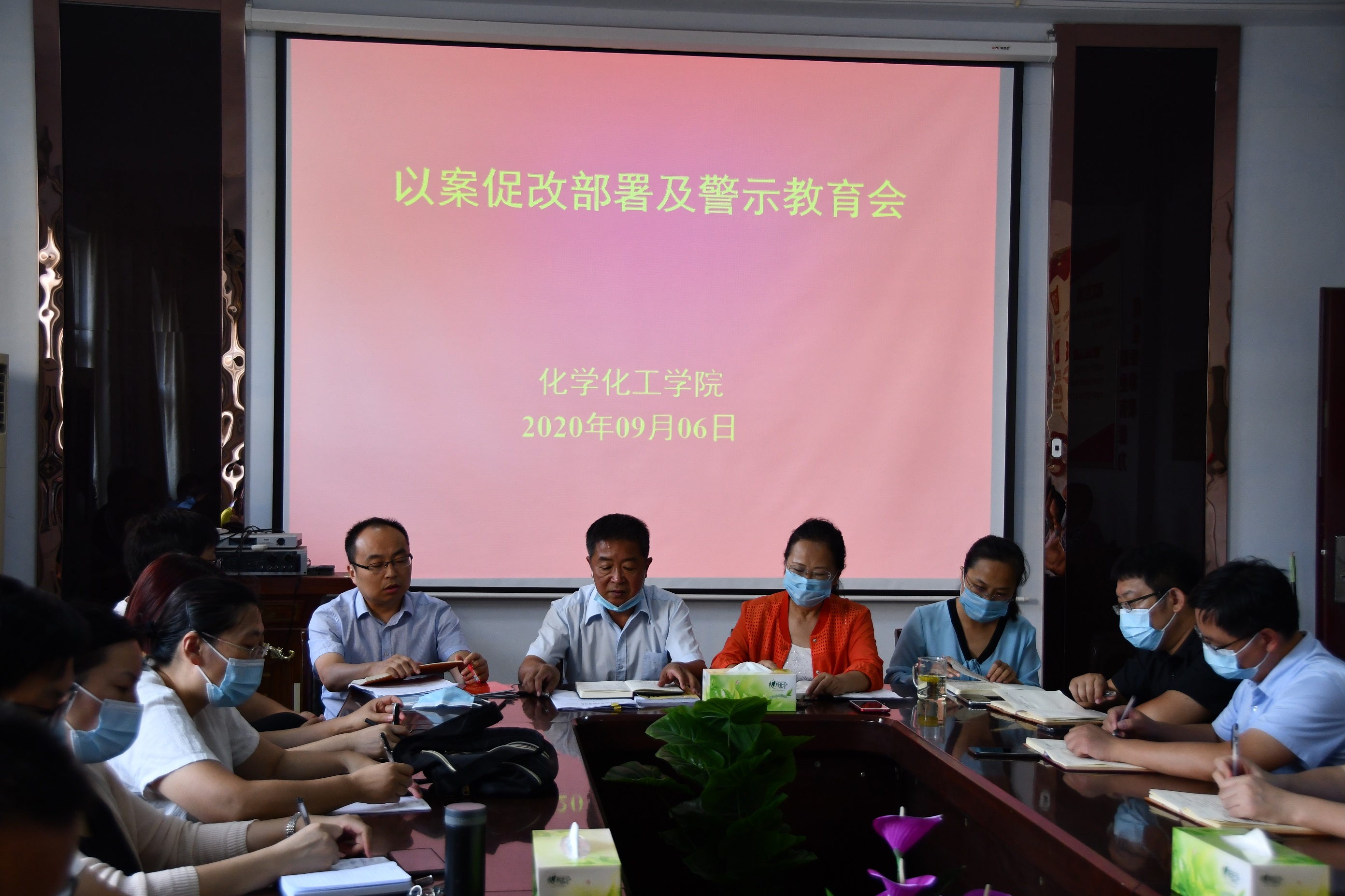 为贯彻落实全省教育系统集中开展以案促改工作部署要求,持续深化化学化工学院以案促改工作,9月6日,化学化工学院在学院会议室召开集中开展以案促改工作部署会及典型案例警示教育会。化学化工学院全体教职工参加,会议由党总支书记韩忠民主持。