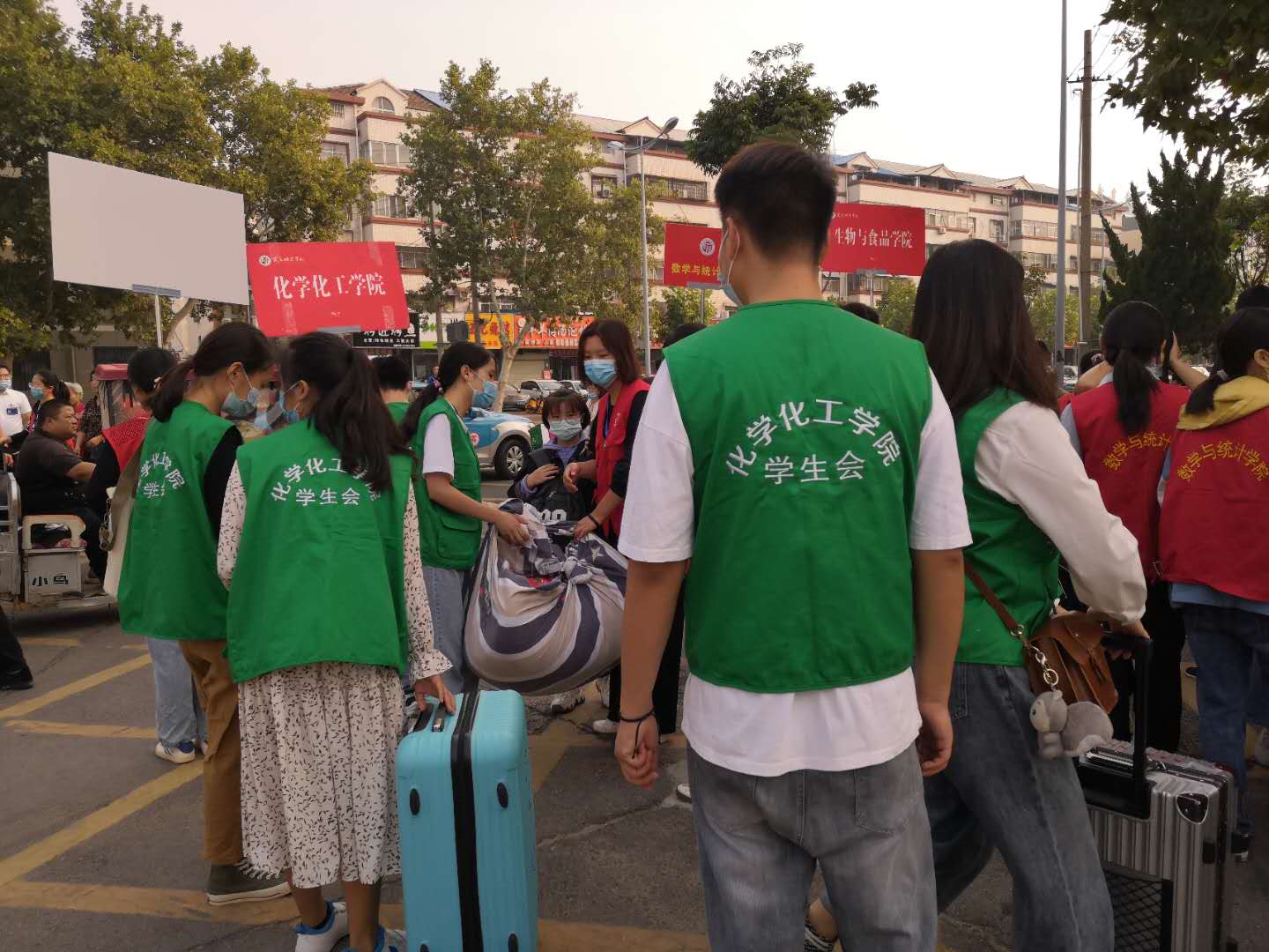 由于疫情原因,新生家长不能入校。为了让新生对接待工作百分百的满意,报到期间,化学化工学院党总支书记韩忠民、党总支副书记刘瑛以及辅导员老师在校门口亲自指导,志愿服务人员一对一服务,为新生搬运行李、办理报到手续、介绍校园、解答疑惑,确保迎新工作顺利完成。