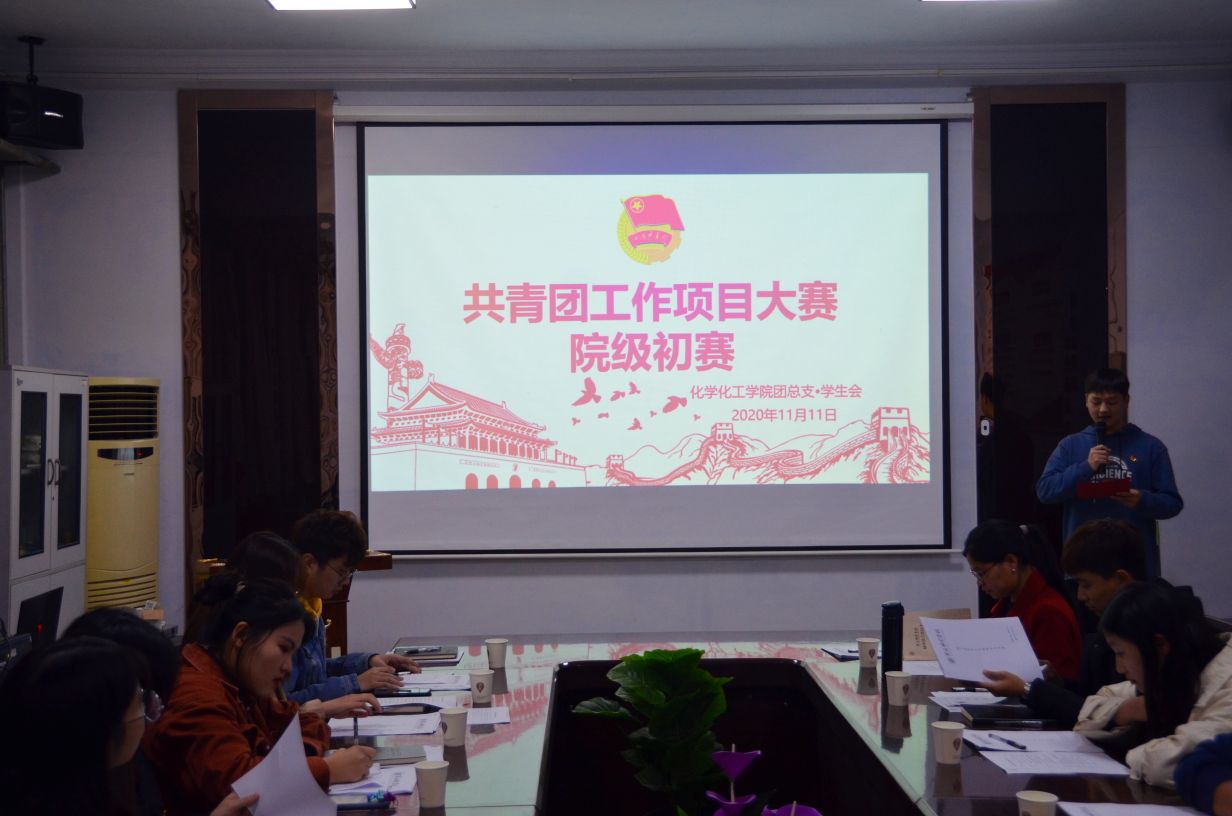 为充分挖掘团支部、社团活力,打造团员青年欢迎,使团员青年真正教育,2020年11月11日晚,化学化工学院于7号楼会议室举行了“共青团工作项目大赛(院级初赛)”。此次活动由团总支副书记郭家瑞出席并担任评委老师,化学化工学院团总支·学生会全体成员参与。