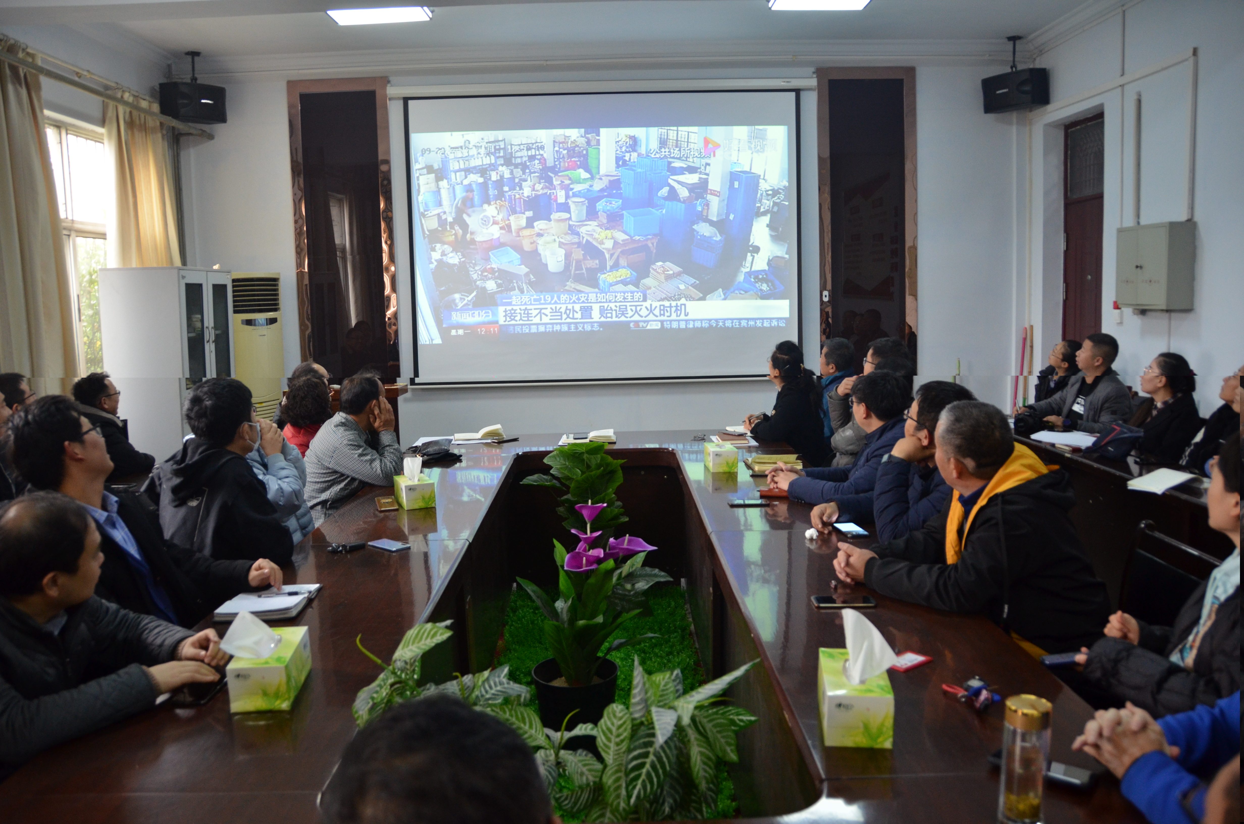 通过观看浙江宁海一家日化厂重大火灾事故的监控录像视频,让大家了解了一场酿成19人死亡的火灾发生前后的真实场景。会议指出全体师生要对于身边的安全隐患加以防范,尤其注重实验室安全、办公场所用电安全、学生宿舍用电安全,要认真学习掌握安全知识提高安全意识。