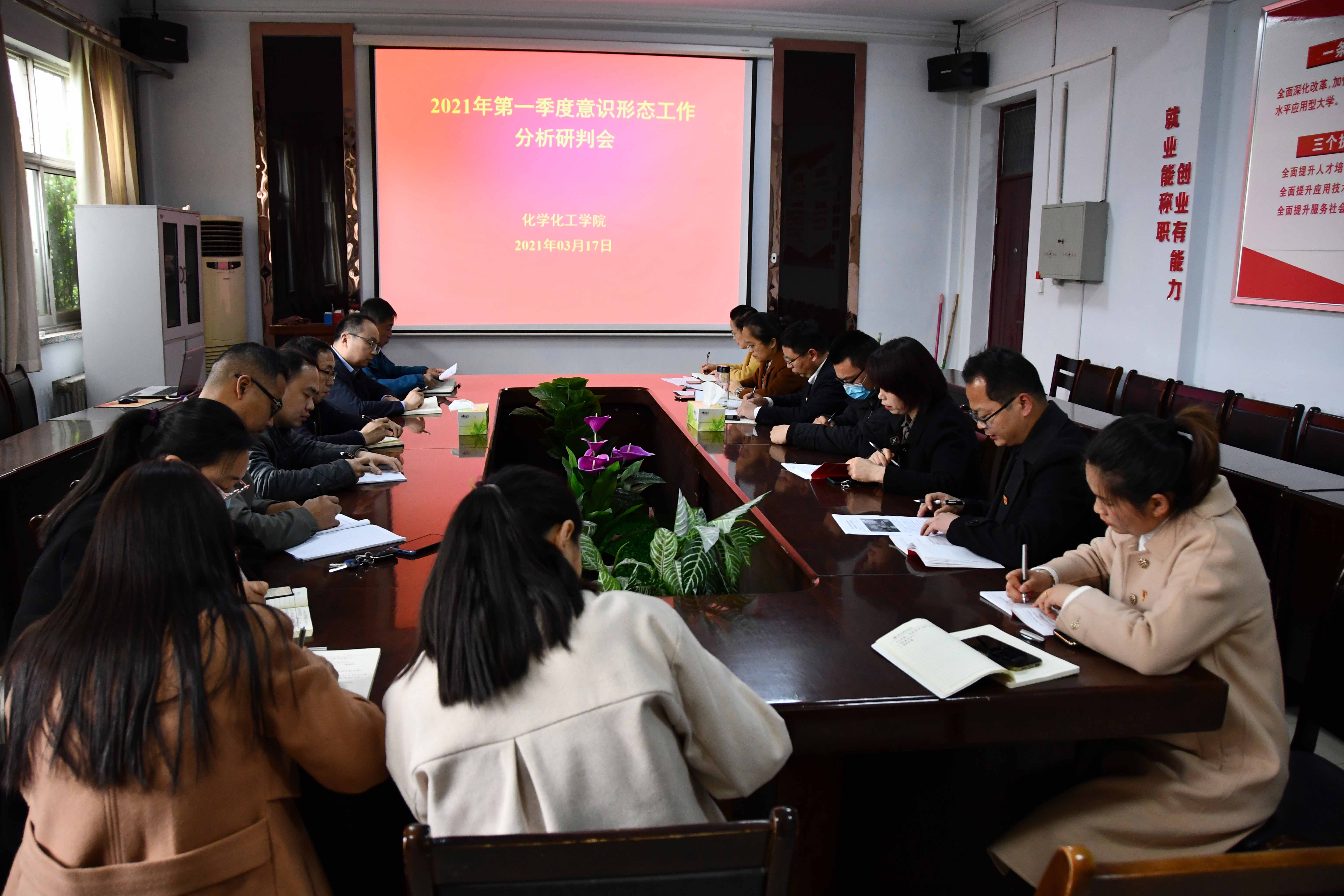 3月17日下午,化学化工学院党总支于7号楼会议室召开2021年第一季度意识形态工作分析研判会。学院领导班子、党支部书记、办公室主任、教学办主任、辅导员参加会议。院党总支书记韩忠民主持会议。