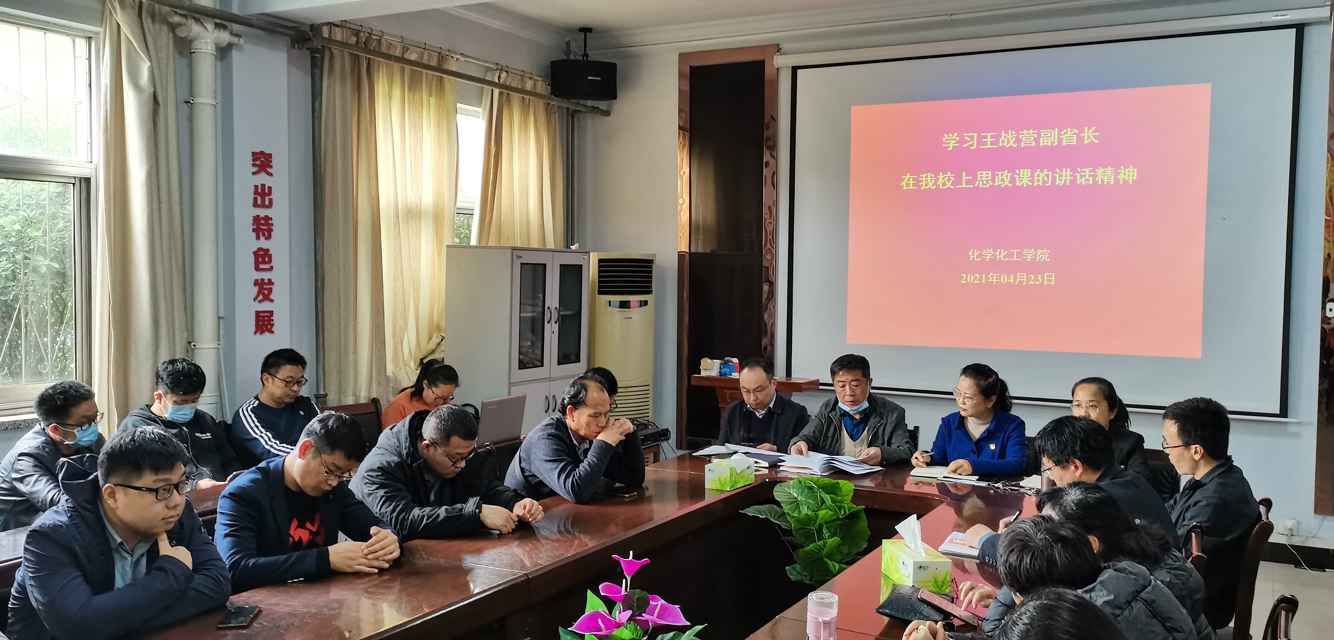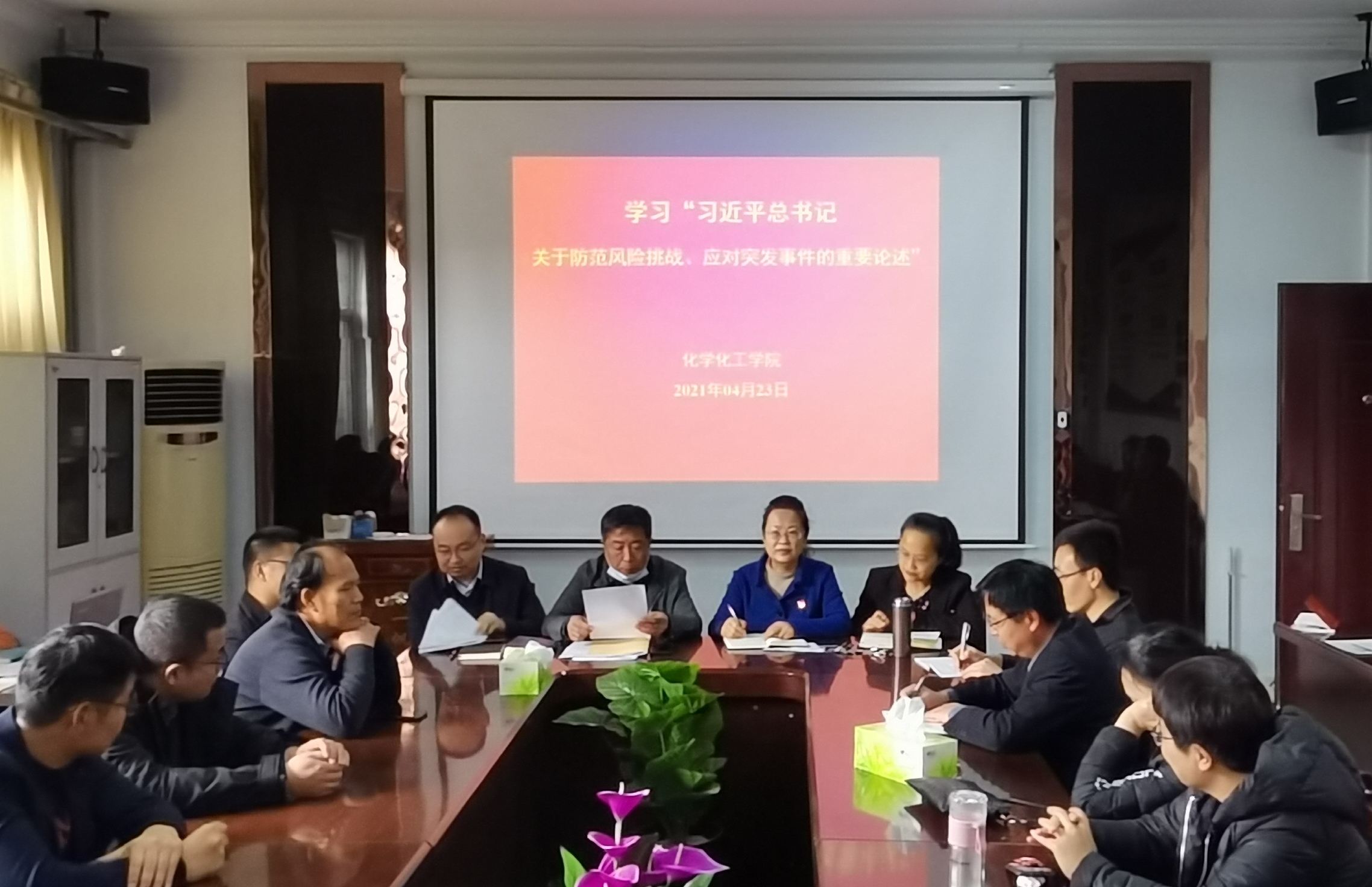 2021年4月23日,化学化工学院于睢阳校区7号楼会议室召开第八周政治理论学习。会议由党总支书记韩忠民主持。
