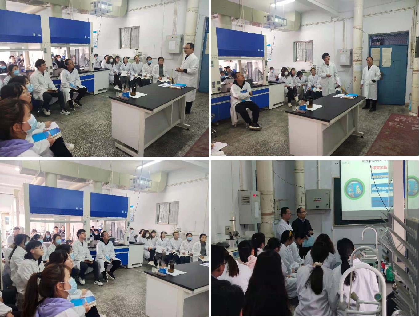 2021年04月26日周一下午第5节课,化学化工学院王涛老师负责的《有机化学实验》课程教学范式改革公开课在睢阳校区化学实验楼407实验室举行,化学化工学院副院长孟团结和学院近两年新入职青年教师观摩了此次公开课。