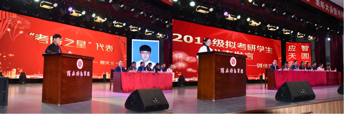 “考研之星”代表郭文龙同学和2018级拟考研学生代表刘倩文同学分别发言,鼓励即将报考研究生的学生要具有艰苦奋斗的精神和决心,不畏艰辛,为目标而战。