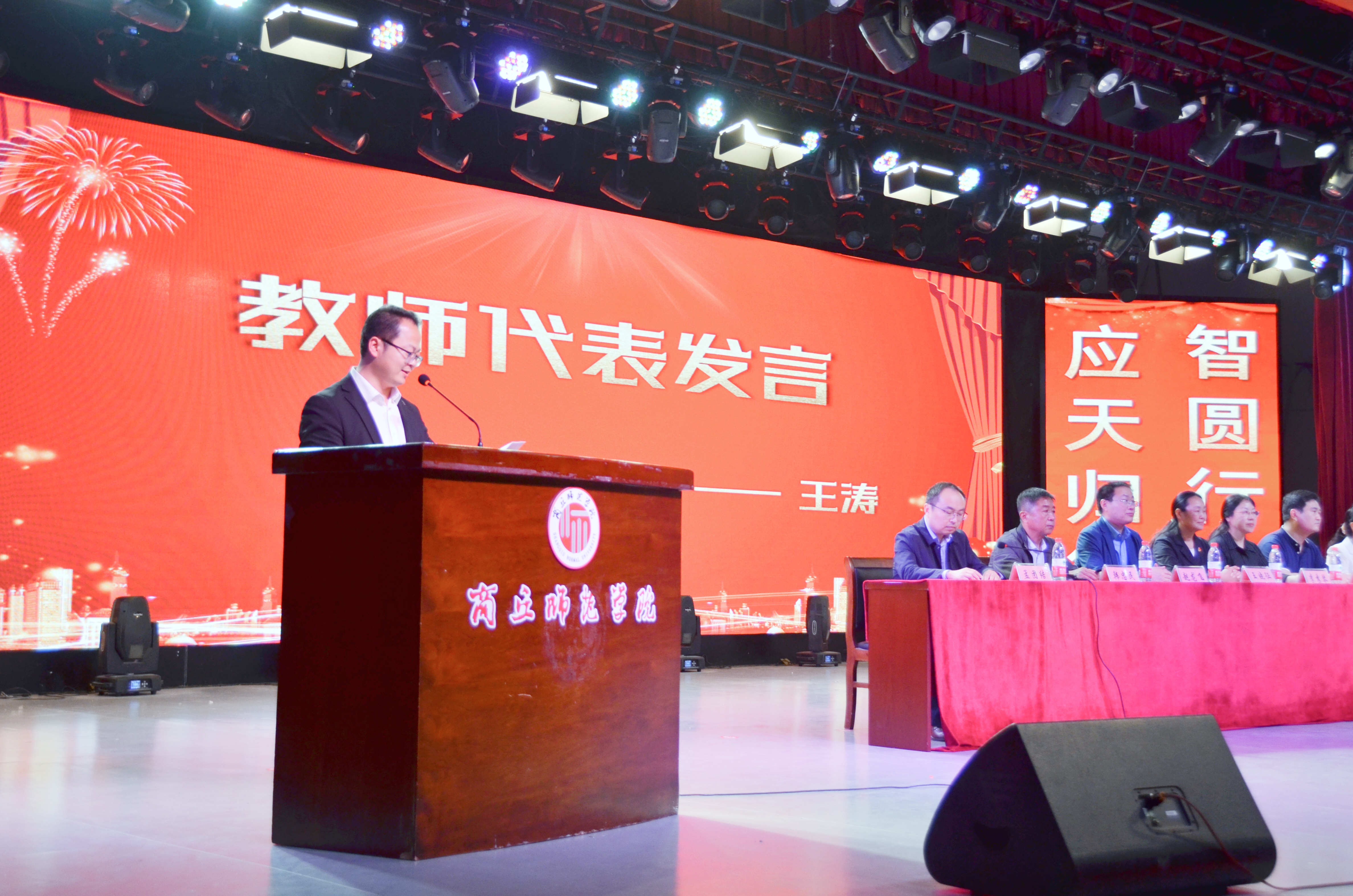表彰大会在庄严的国歌声中拉开序幕。周艳丽宣读受表彰同学名单,各位领导为“考研之星”代表颁奖。教师代表王涛的发言,表达了对考研成功的学生的祝贺。