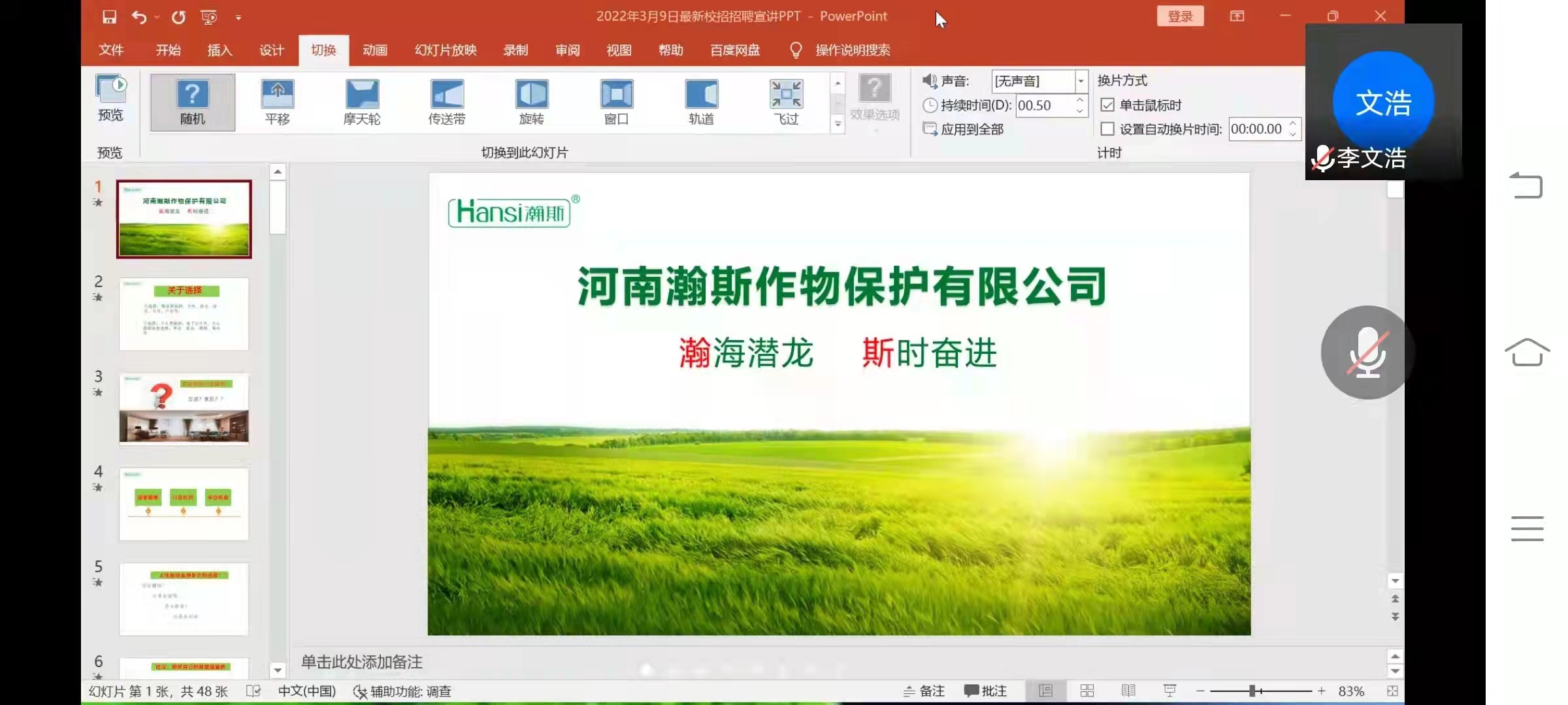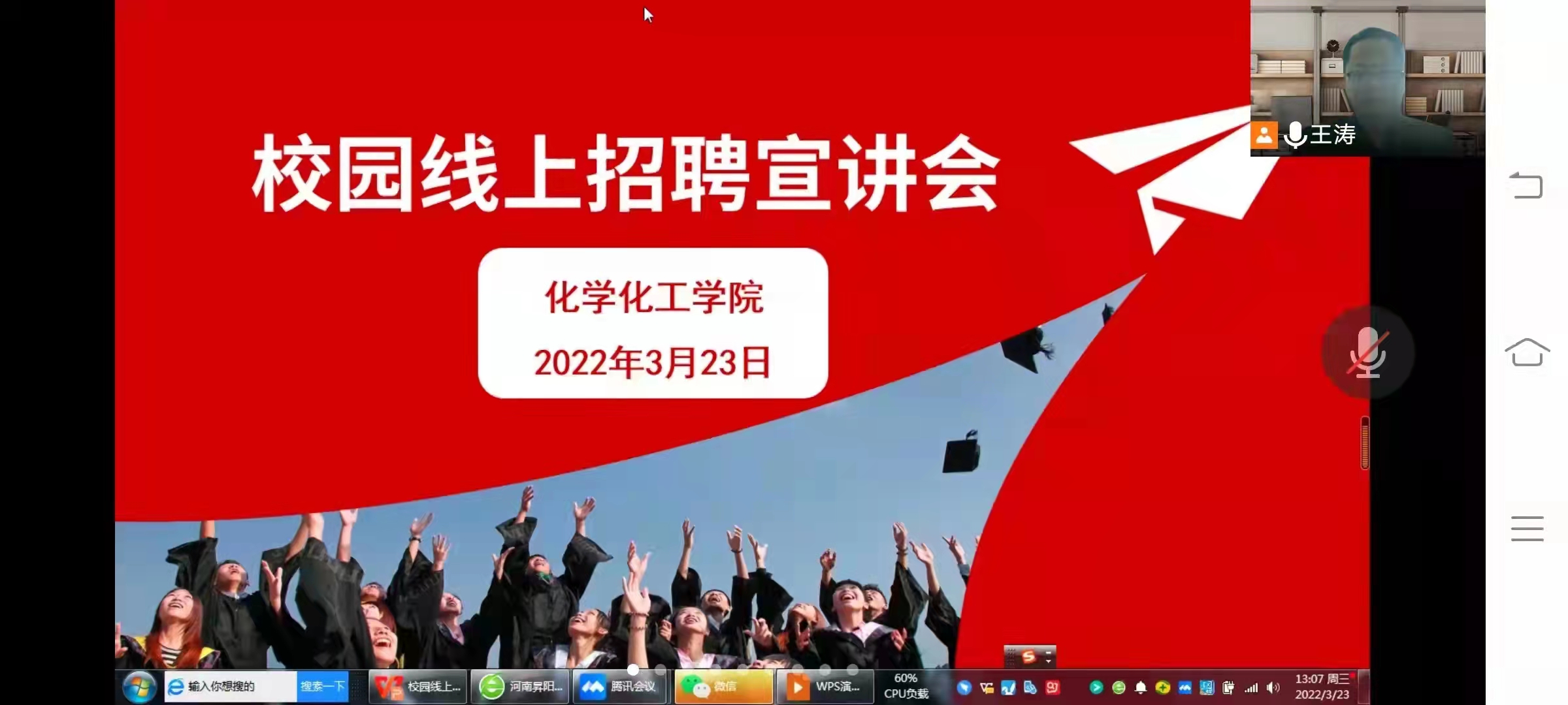 为切实做好毕业生就业工作,3月23日,化学化工学院利用腾讯会议开展了就业招聘宣讲会,参加会议招聘宣讲的企业有河南昇阳生物科技有限公司和河南瀚斯作物保护有限公司。