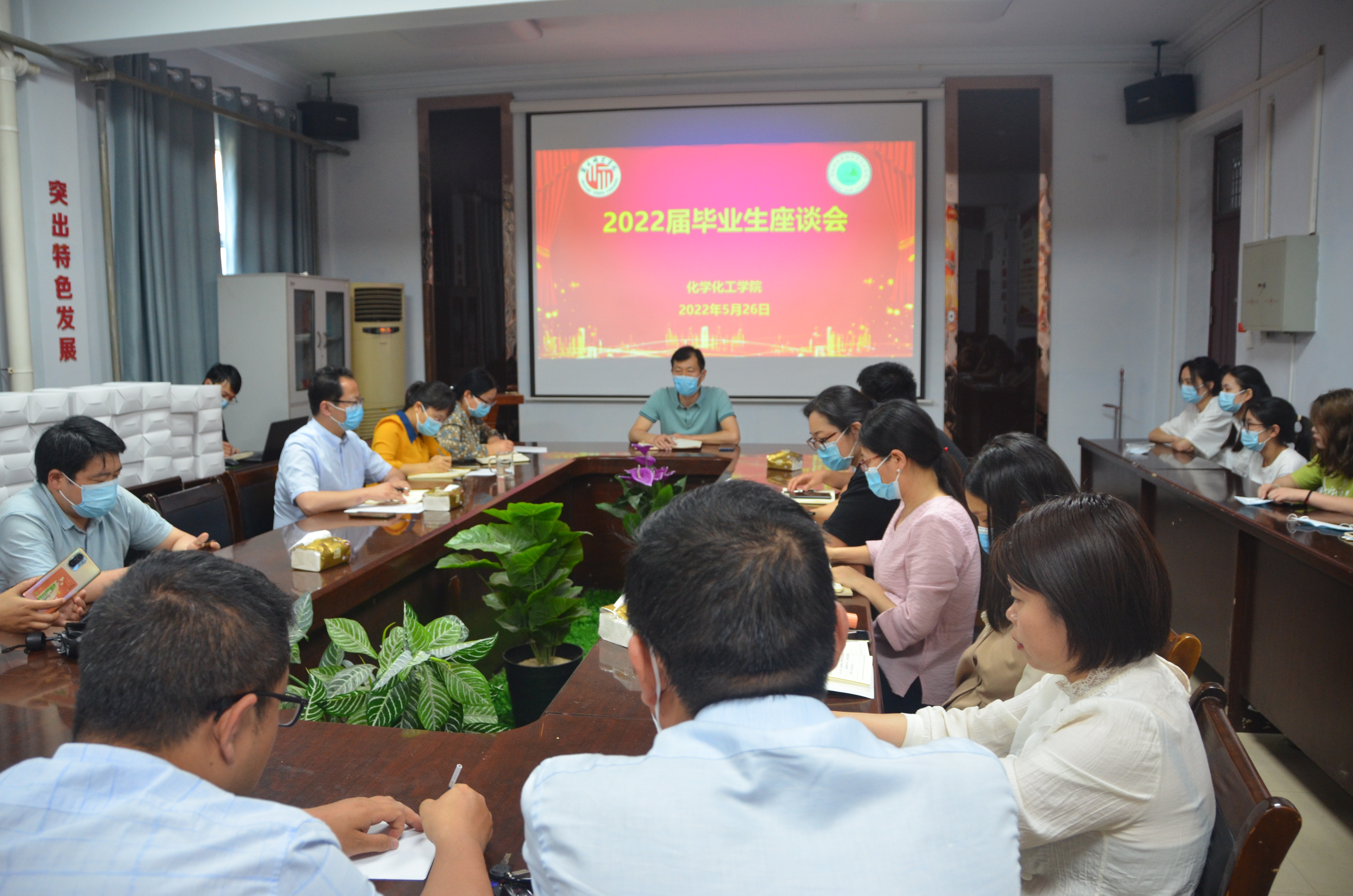 5月26日,化学化工学院于7号教学楼会议室举办了2022届毕业生座谈会。化学化工学院领导班子、各年级的辅导员、毕业班班主任以及毕业班的学生代表参加了此次座谈会,活动由党委书记李海涛主持。