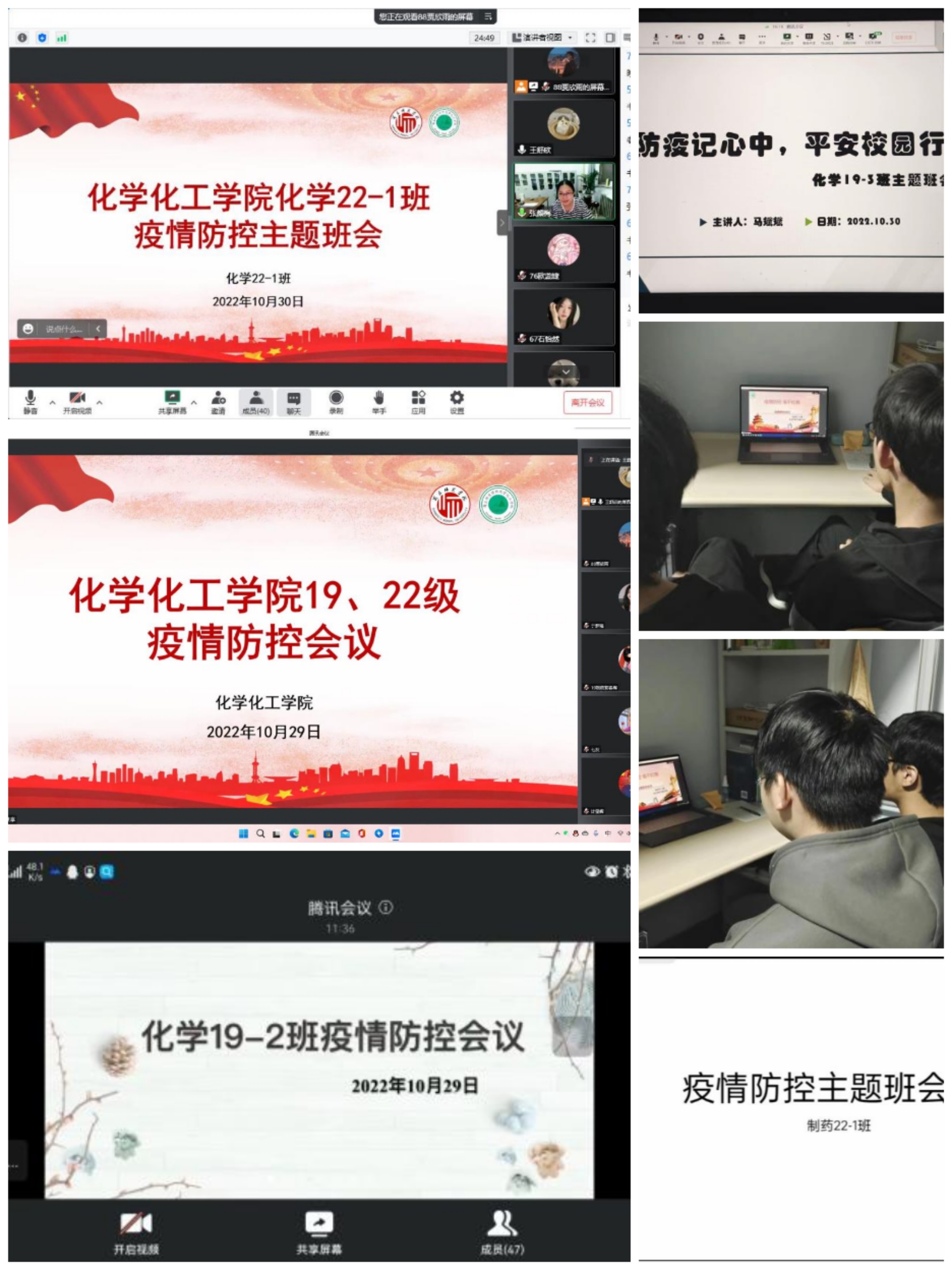 为做好化学化工学院疫情防控工作,增强永利23411集团学生的疫情防控意识,加强对学生的思想教育与价值引领,近期在各年级召开疫情防控主题班会,院党委副书记张颜梅、各班班主任、辅导员及全体学生参加会议。