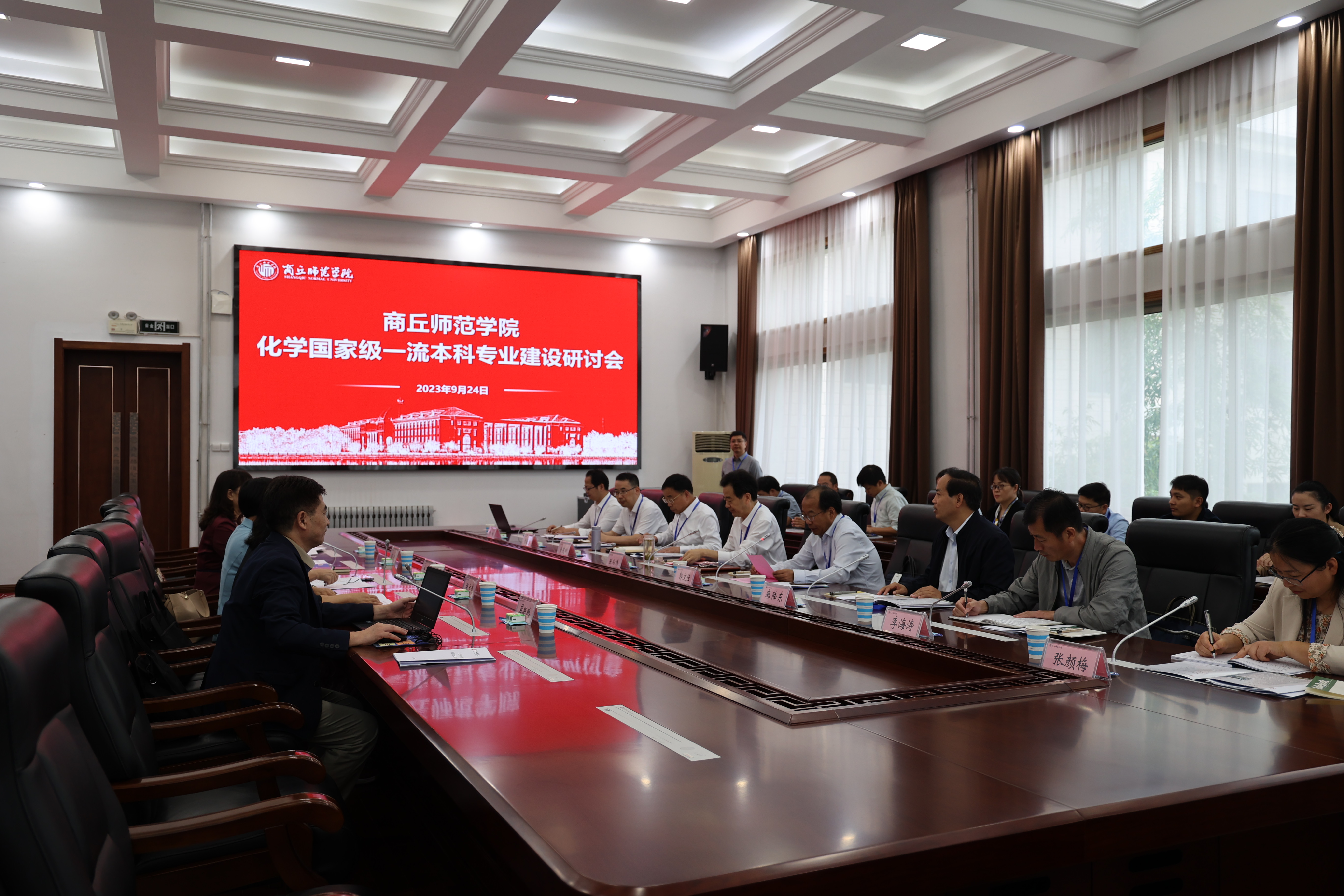 为进一步推进化学国家级一流本科专业建设点的建设工作,切实提升专业建设水平,9月24日,我校召开了化学一流本科专业建设研讨会。研讨会邀请了教育部化学类专业教学指导委员会秘书长、厦门大学朱亚先教授,教学指导委员会委员北京化工大学杨屹教授、华东理工大学张文清教授、湖南大学王玉枝教授,华南师范大学蔡跃鹏教授等多位专家与会指导。校长陈向炜、副校长郭文佳、河南省生物分子识别与传感重点实验室主任徐茂田、教务处副处长麻陆东、化学化工学院全体领导班子成员、基层教学组织负责人以及部分骨干教师等出席研讨会。会议由郭文佳主持。