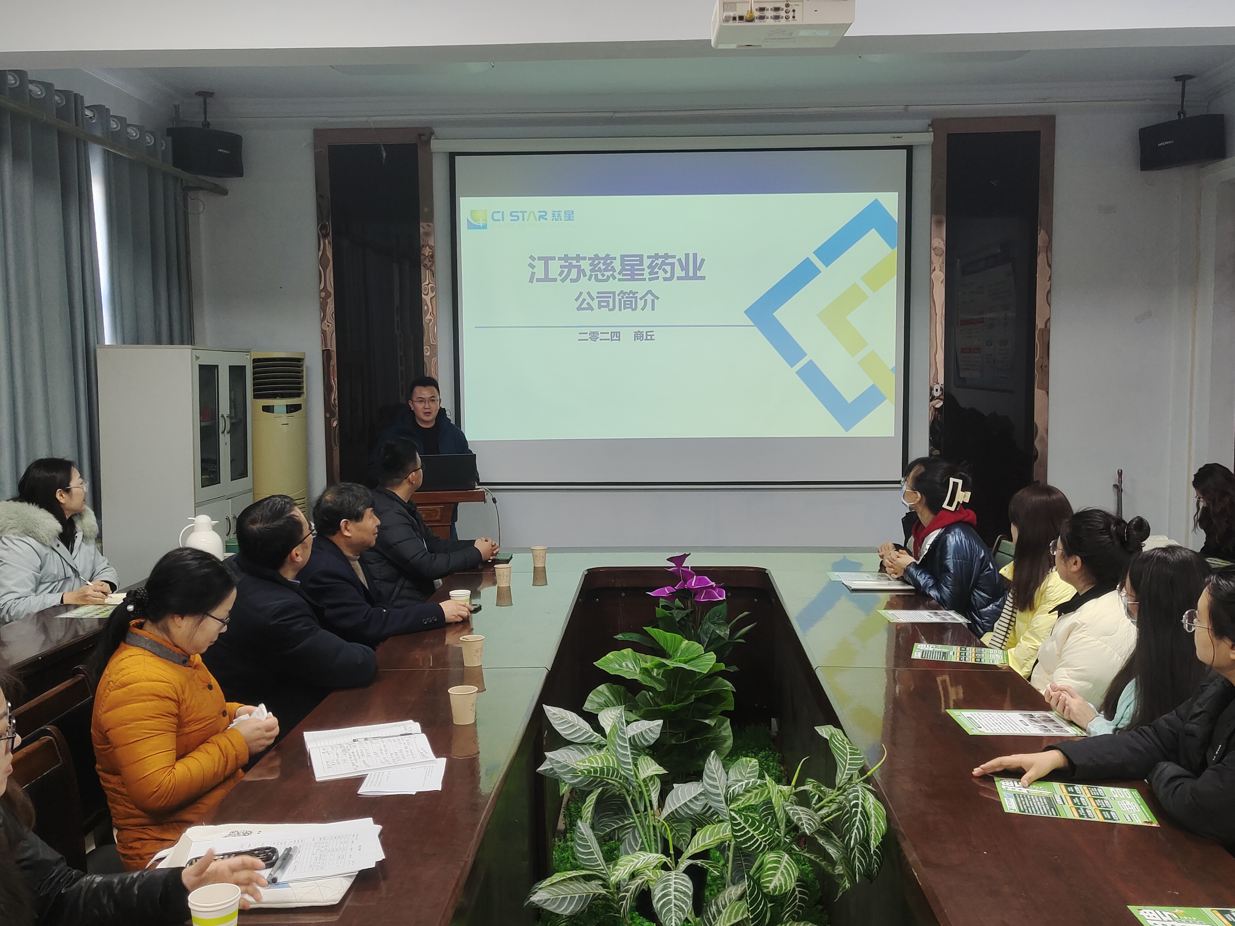 会议伊始,马德营结合个人在母校的求学经历与自身发展历程与同学们进行了交流。他建议同学们首先要专业对口;其次选择发展空间;再者是选择就业区域。紧接着,人事总监樊万琪从慈星药业公司简介、慈星药业公司产品及规划、慈星药业公司企业文化解析和慈星药业公司职业规划及福利待遇四个方面展开宣讲。