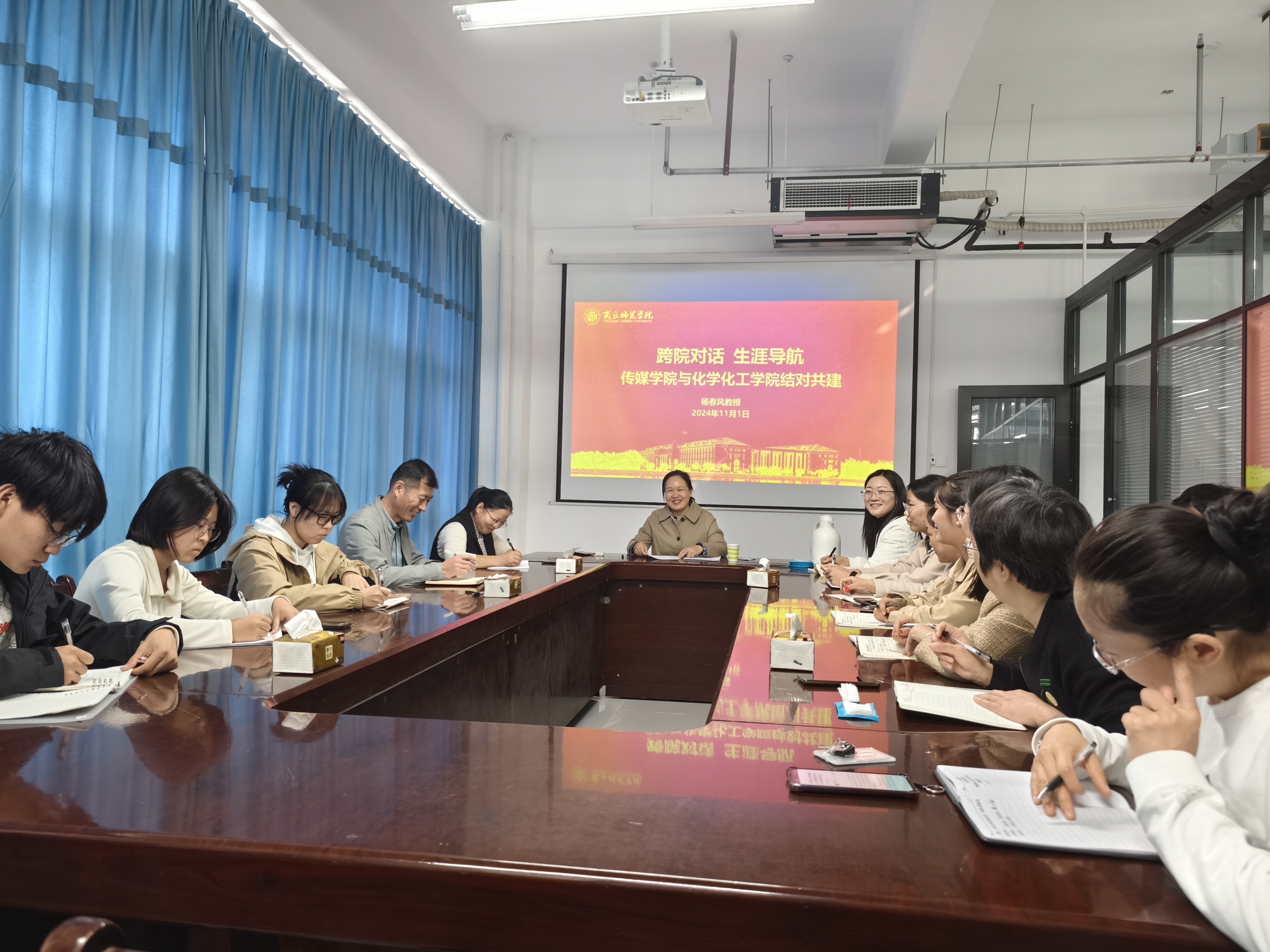 为加强学院之间的交流与合作,11月1日,传媒学院与化学化工学院于工科实训楼B308会议室开展以“跨院对话,生涯导航”为主题的讲座,主讲人为传媒学院院长杨春风,化学化工学院领导班子、辅导员、教学办全体成员参加。