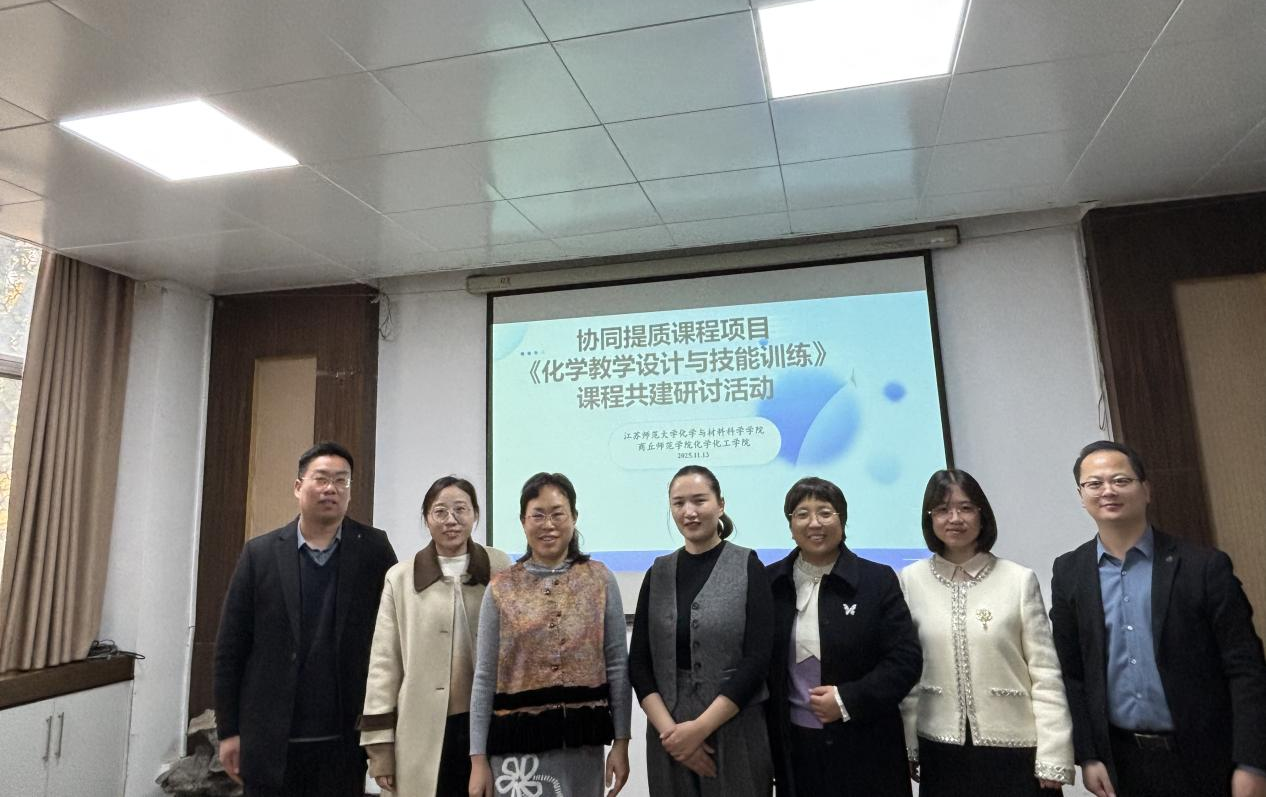 2025年11月13日,江苏师范大学化学与材料科学学院与永利23411集团化学化工学院协同提质项目《化学教学设计与技能训练》课程共建研讨活动圆满举行。江苏师范大学化学与材料科学学院副院长刘建全、永利23411集团化学化工学院副院长王涛,以及双方学院学科教学论骨干教师共同参与了此次研讨活动。