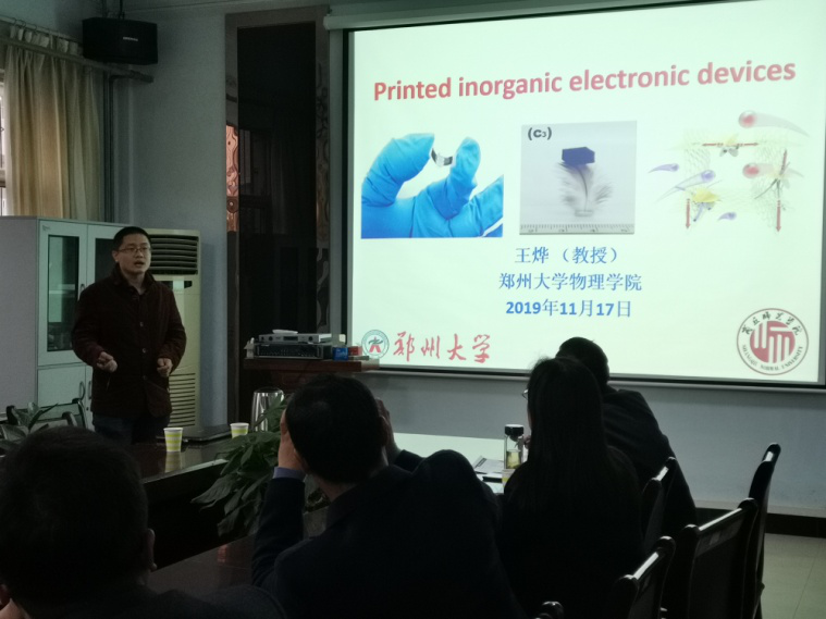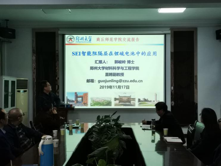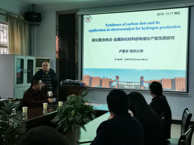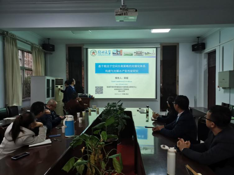 应化学化工学院的邀请,11月17日,郑州大学青年拔尖人才王烨、卢思宇、薛超、郭峻岭四位博士在文化路校区化学化工学院会议室分别做了题为“Printed electronic devices with inorganic materials”、“碳化聚合物点的可控制备及性质研究”、“基于载流子空间分离策略的光催化体系构建与光解水产氢性能研究以及“SEI智能阻隔层在锂硫电池中的应用”的学术报告,报告会由瞿鹏院长主持,化学化工学院部分老师、研究生和本科生聆听了报告。