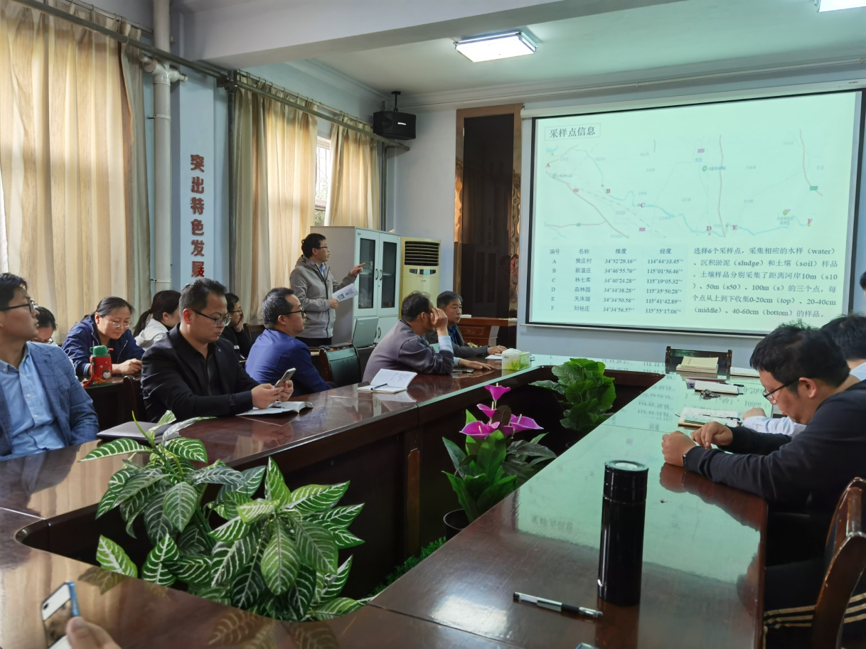 杜兵兵博士向大家汇报了关于黄河故道(商丘段)典型重金属的分布特征与环境风险评估的相关研究工作。该研究采集黄河故道(商丘段)沿线6个地点的水体和土壤样品,对其中典型重金属的含量及形态进行分析,通过数学模型系统评估了研究区域内重金属污染程度和潜在生态危害。此外,还对研究区域内土壤中的微生物群落及耐重金属基因进行分析,探究了重金属与微生物间的相互关系,推测携带耐重金属基因的潜在宿主菌。报告会后,各位老师与杜兵兵博士就相关问题进行了深入的讨论与交流。