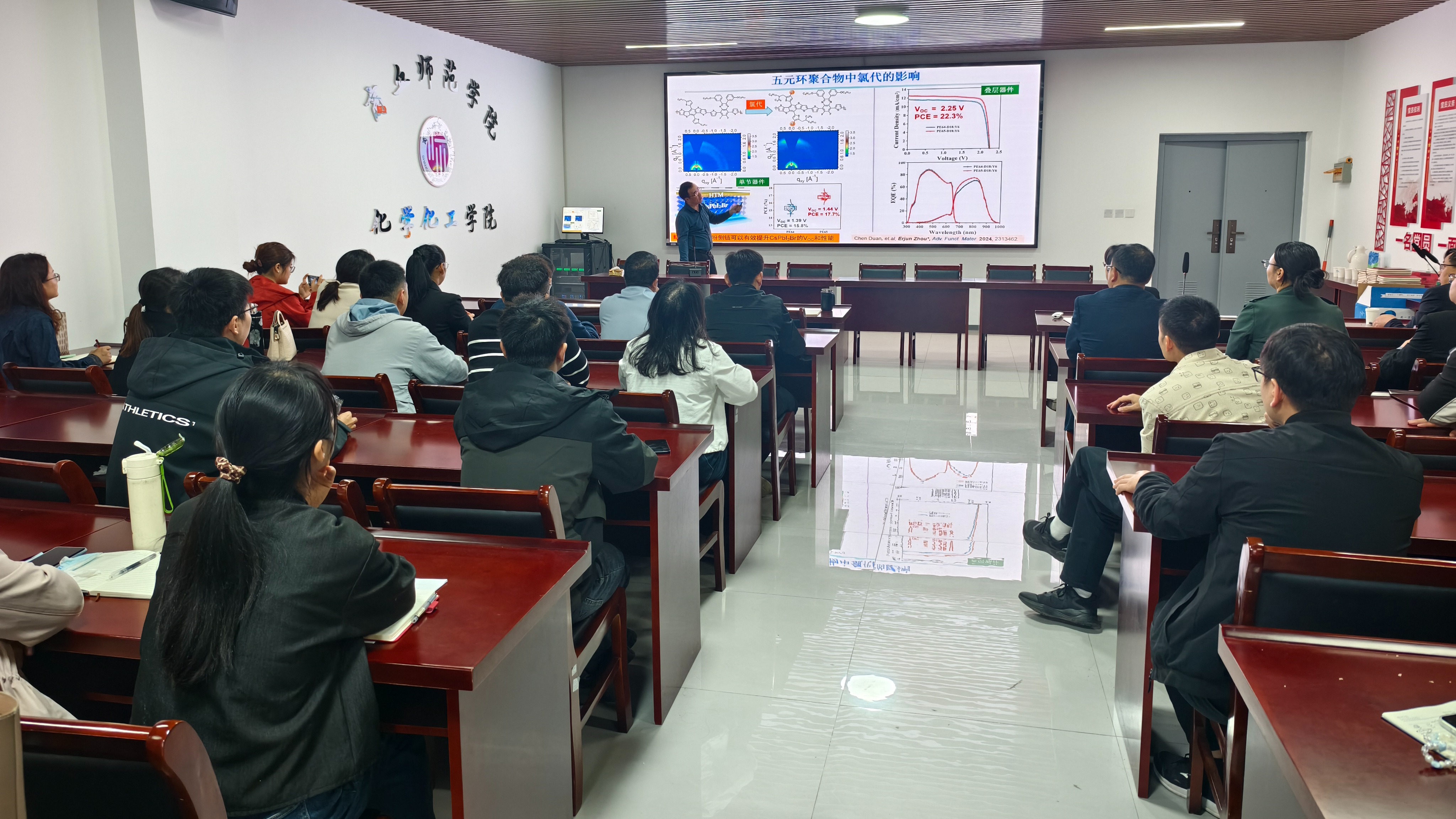 10月9日,化学化工学院特邀嘉兴大学周二军教授在睢阳校区工科实训大楼309会议室开展《有机光伏电池研究进展及基金申请注意事项》专题报告。化学化工学院院长周艳丽教授主持此次报告会,副校长刘澜涛教授以及化学化工学院部分教师参加了此次报告会。