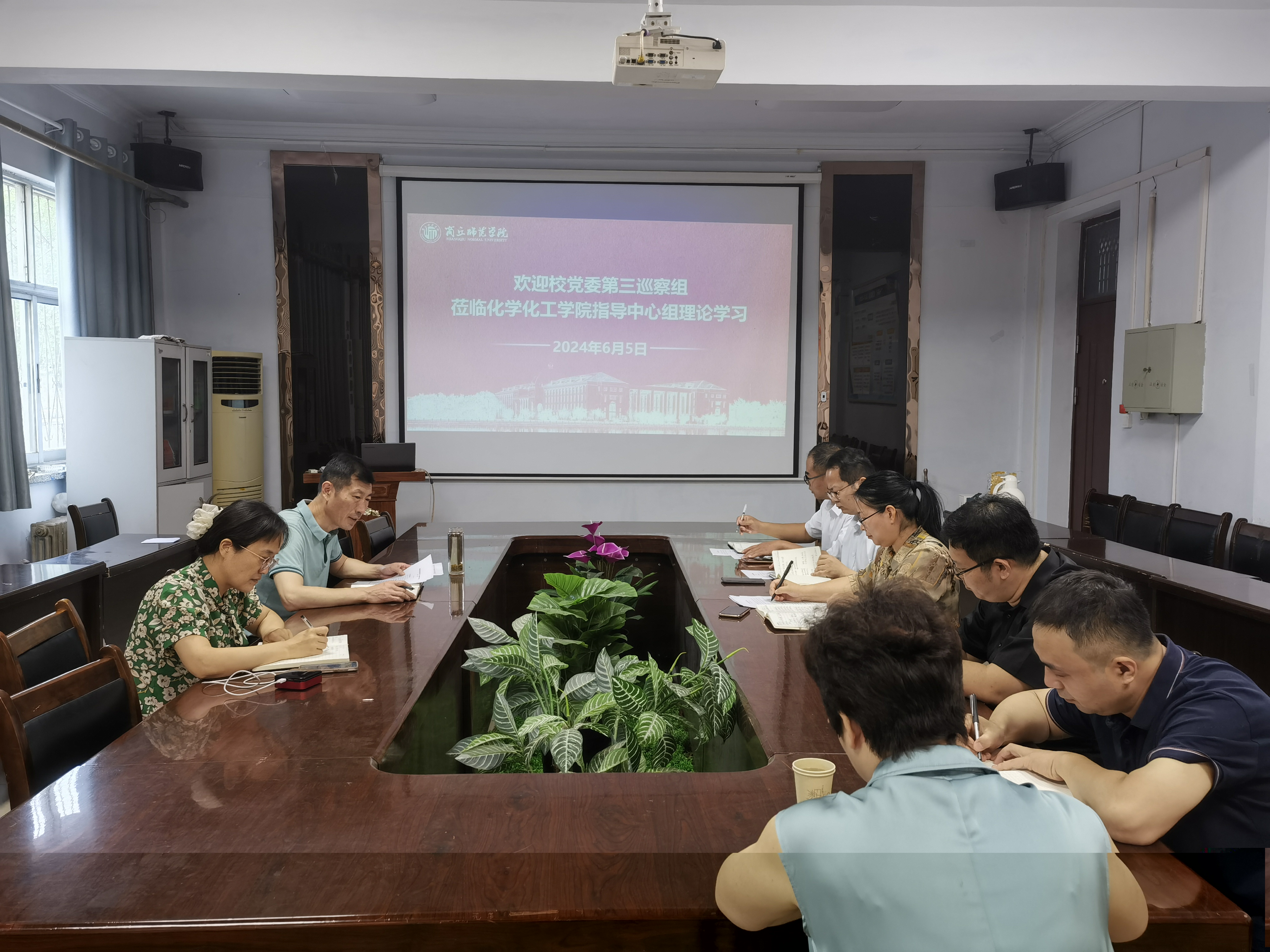 6月5日,化学化工学院党委在7号楼会议室举行理论学习中心组学习研讨会议。校党委第三巡察组组长李琳及成员李征列席旁听指导,学院全体处级以上领导干部参加会议。会议由党委书记李海涛主持。