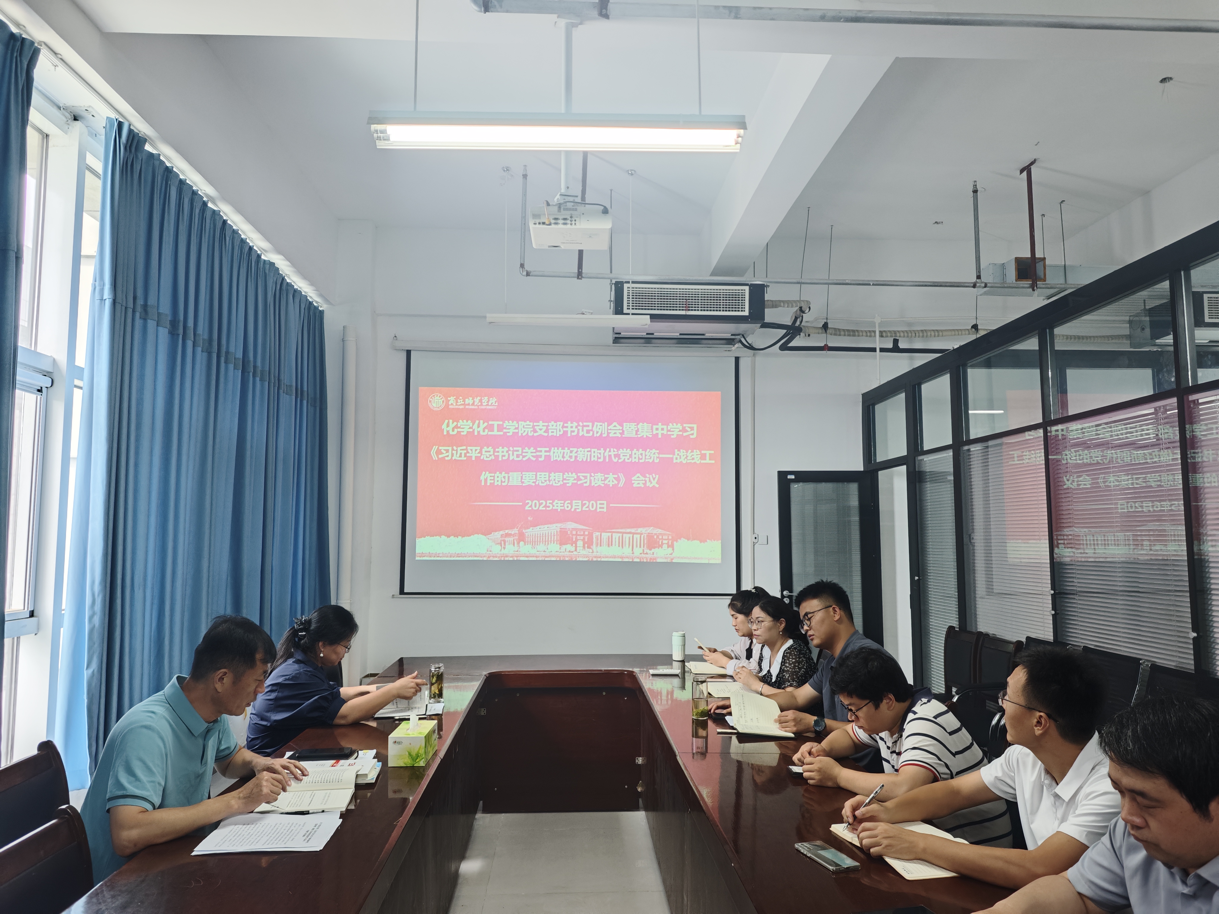 6月20日,化学化工学院党委召开6月份党支部书记例会暨《习近平总书记关于做好新时代党的统一战线工作的重要思想学习读本》第五章专题学习会议。会议由党委书记李海涛主持,党委副书记张颜梅及各党支部书记参加会议。