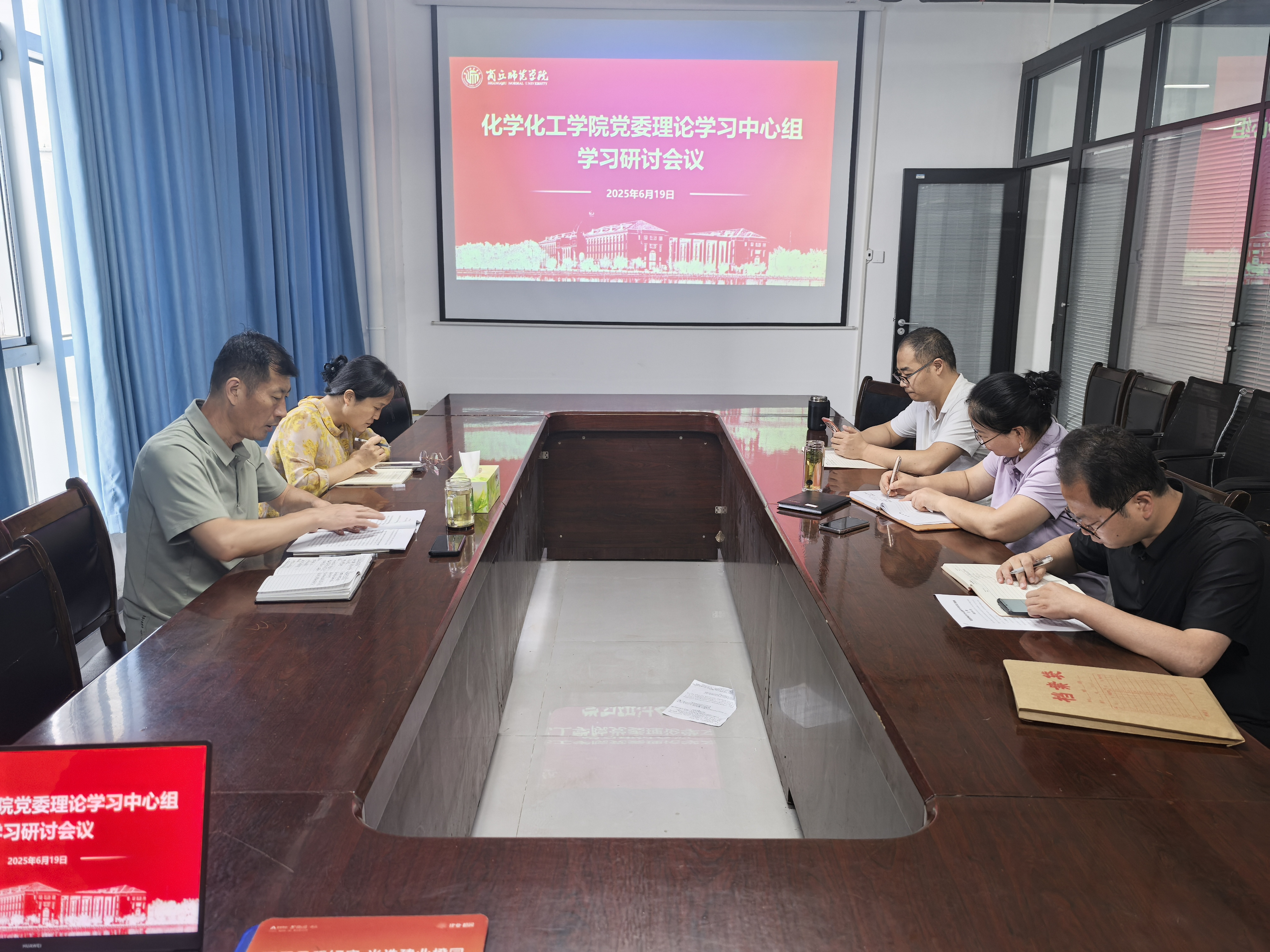 6 月 19 日,化学化工学院在工科实训大楼B308 会议室召开党委理论学习中心组学习研讨会议,深入学习贯彻习近平总书记考察河南重要讲话精神,系统学习领会关于铸牢中华民族共同体意识和科技创新的重要论述,并开展深入贯彻中央八项规定精神相关警示教育。学院领导班子全体成员参加会议,院党委书记李海涛主持会议并作总结讲话。