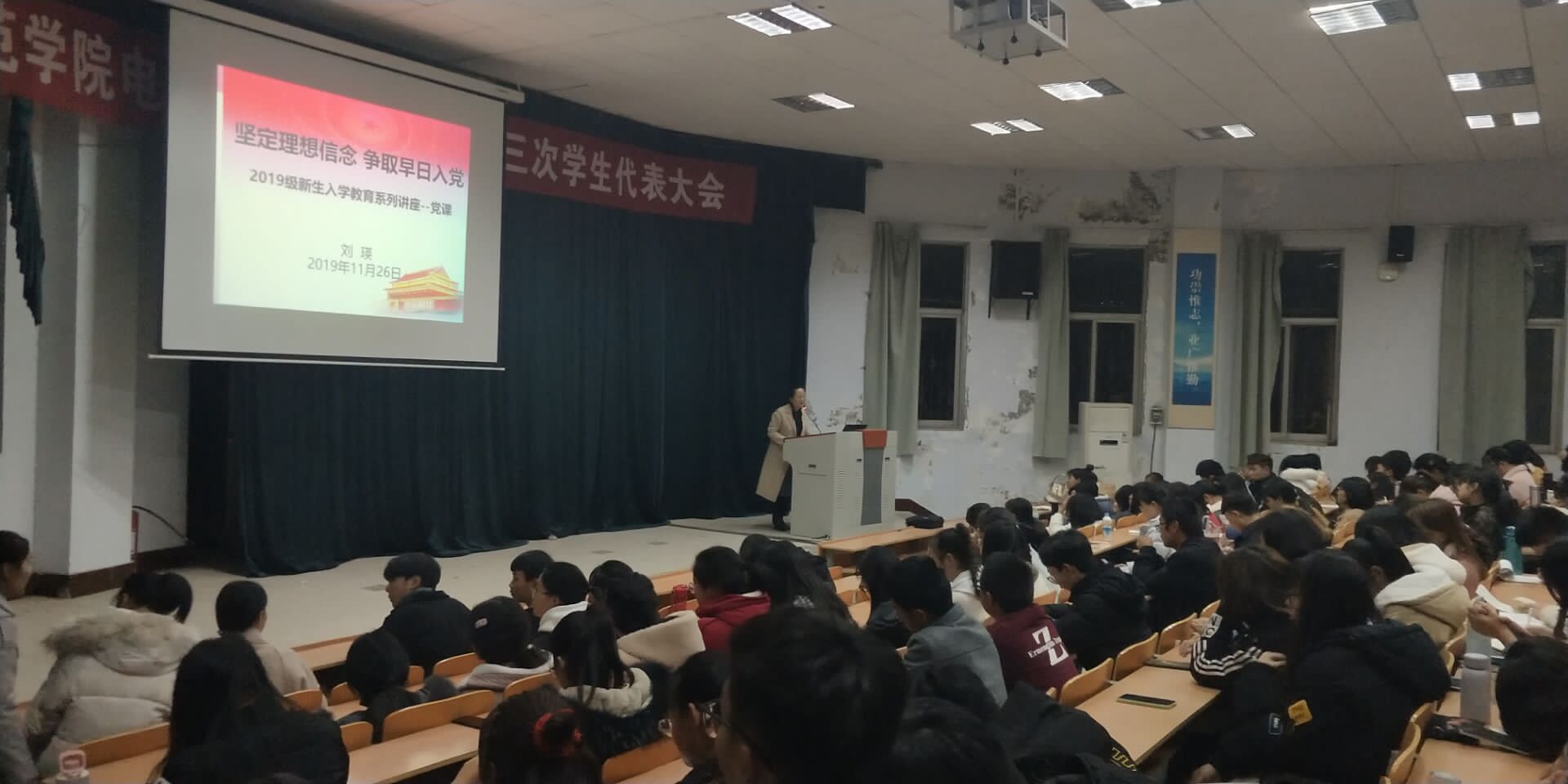 讲座结束后,全体19级新生纷纷表示,积极向党组织靠拢,坚定理想信念,不忘初心,牢记使命,及时向党组织作思想汇报,学习党组织精神,坚定不移地跟党走,争取早日入党。