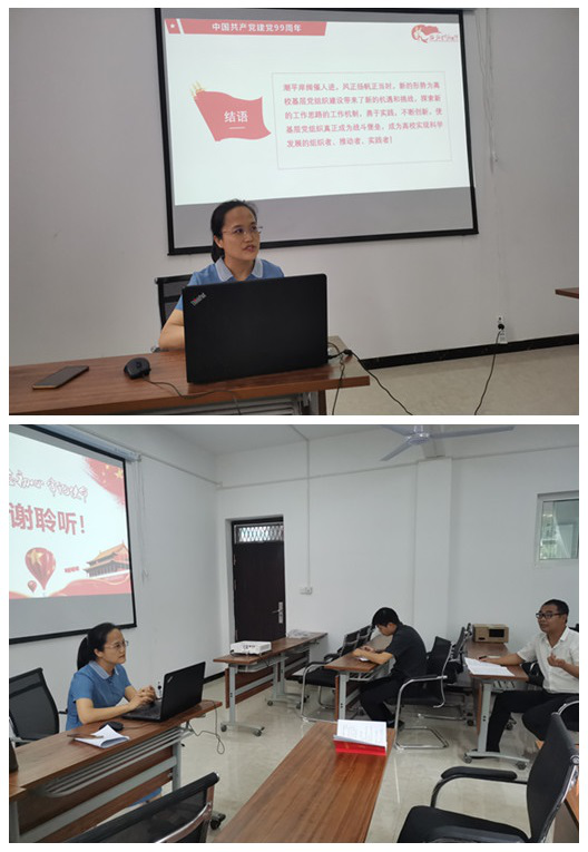 2020年7月2号上午10:30,我支部党员周艳丽同志讲了题为《关于高校基层党组织建设的几点思考》的党课。