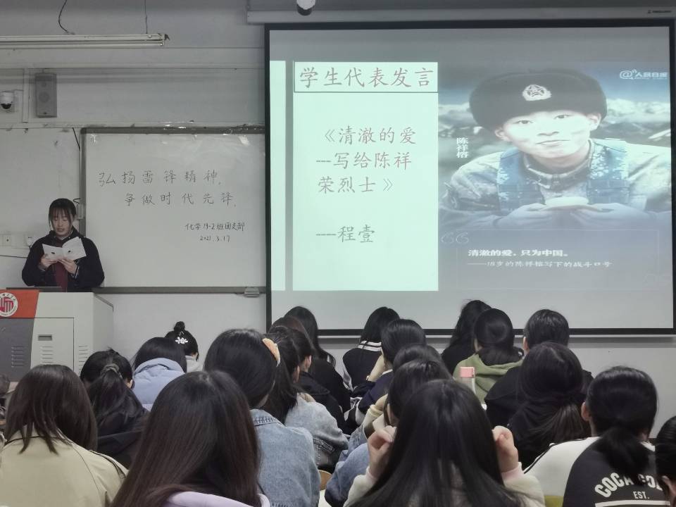 为深入学习雷锋精神,培养同学们的奉献精神,以实际行动向雷锋同志学习,展现当代大学生的精神风貌,3月17日晚,化学化工学院化学19-2团支部于睢阳校区1号楼409教师开展“弘扬雷锋精神,争做时代先锋”主题团日活动。化学化工学院团总支副书记郭家瑞和19级辅导员李宁娅到活动现场指导。