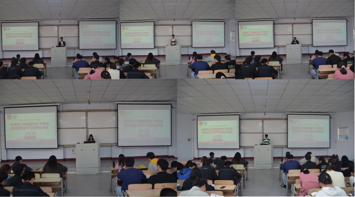 4月27日,化工学院于睢阳校区1教学号楼107教室开展党史学习思想交流会。化学化工学院团总支副书记郭家瑞参加。