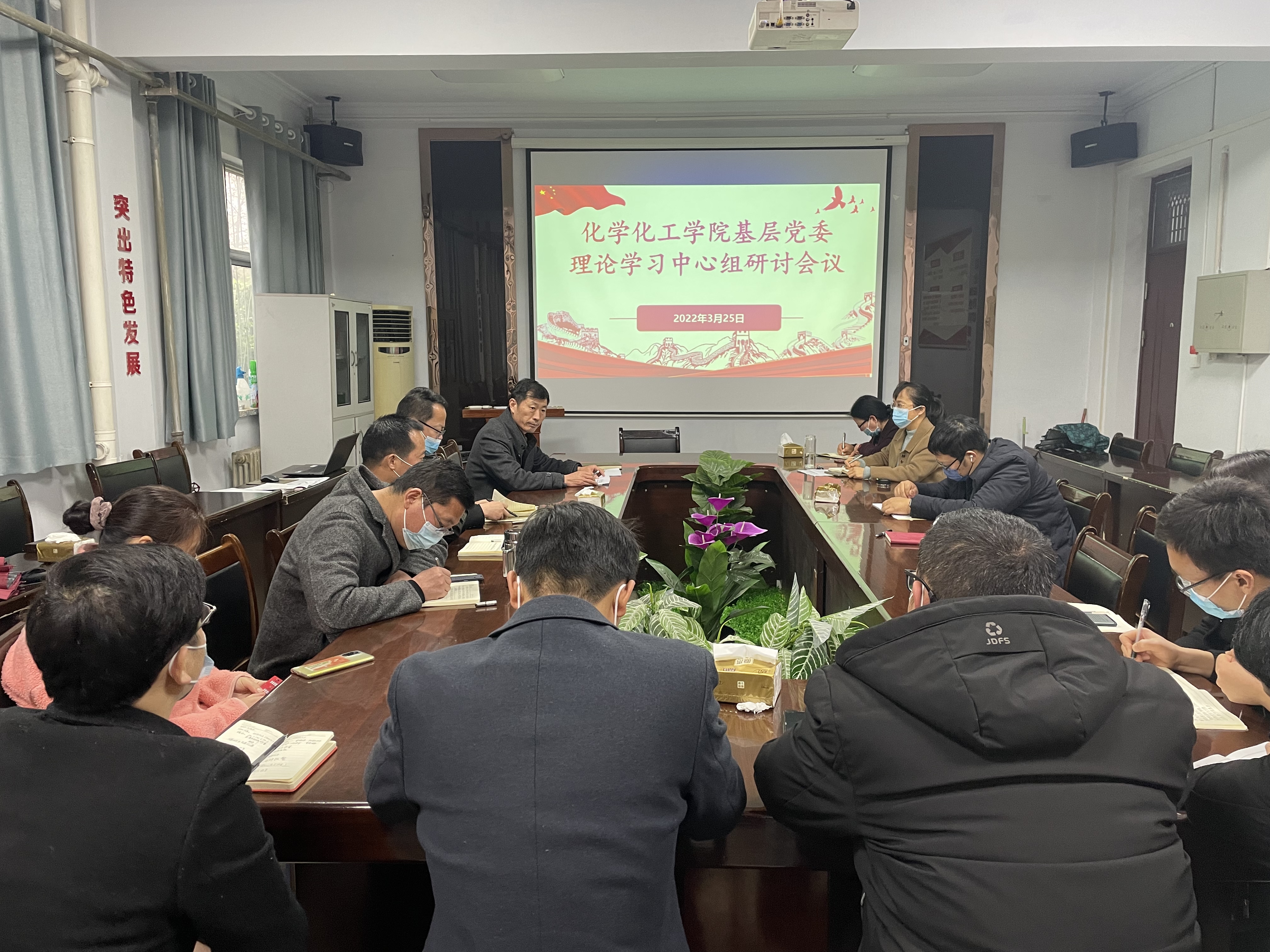 3月25日下午,化学化工学院在睢阳校区7号楼会议室召开党委中心组理论学习研讨(扩大)会议,对习近平总书记在2022年春季学期中央党校中青年干部培训班开班式上的重要讲话与省委书记楼阳生在全省“能力作风建设年”活动推进会议上的讲话进行了重点学习和研讨。学院中心组成员、各基层教学组织负责人参加,会议由学院党委书记李海涛主持。