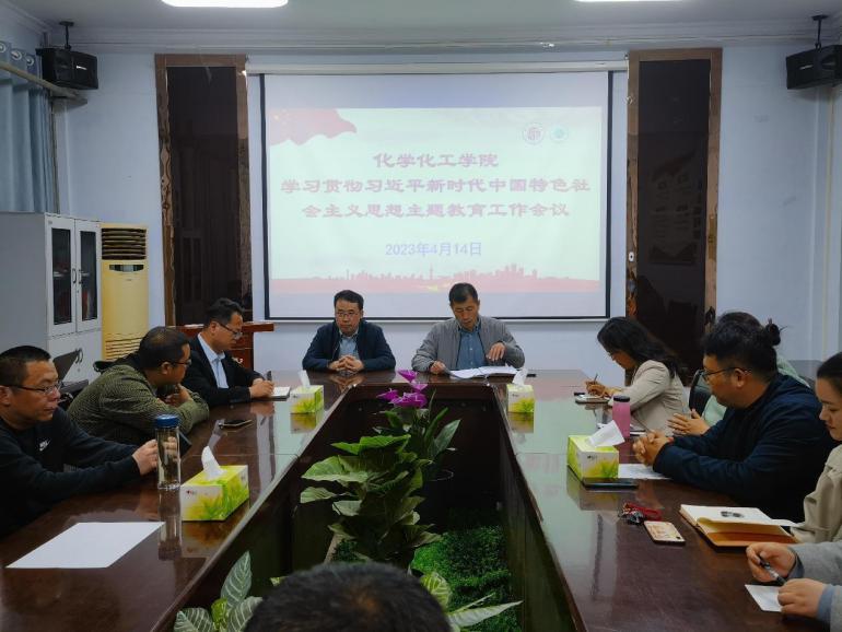 4月14日下午,化学化工学院召开学习贯彻习近平新时代中国特色社会主义思想主题教育工作会议,贯彻落实习近平总书记在学习贯彻习近平新时代中国特色社会主义思想主题教育工作会议上的重要讲话精神,传达学习省委及学校关于深入开展主题教育的意见,安排部署永利23411集团主题教育工作。院党委书记李海涛、院长张银堂作动员讲话,学院班子成员及全体教职工参加会议。